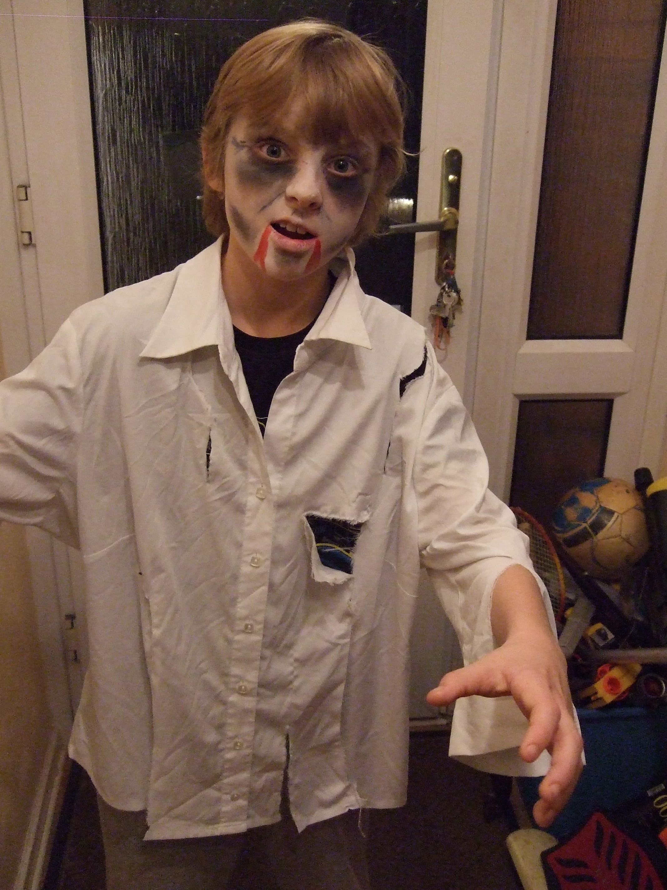 George dressed as a Zombie. I’m rather chuffed with my makeup skills.