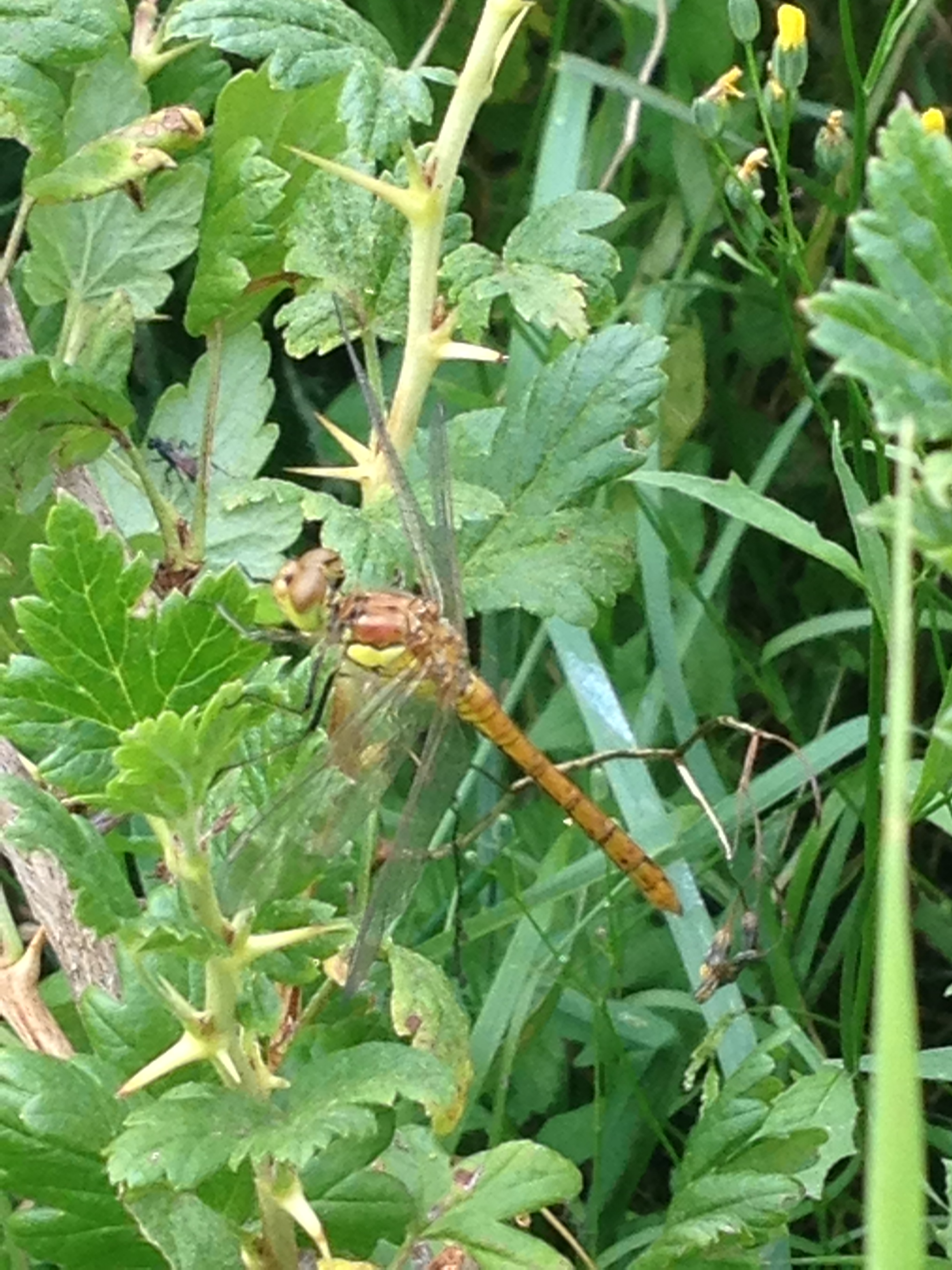 As I was working my way through the gooseberry bushes and being careful not to hurt myself too much, I came across a dragon fly sitting on one of the bushes sunning itself. It wasn’t worried that I was very close, but eventually flew away when I got really close. I think they’re amazing creatures, they look really scary, but won’t hurt you. Seems a strange place for it to be, as usually they live a round ponds and lakes. Maybe it was a bit confused, like I get sometimes.