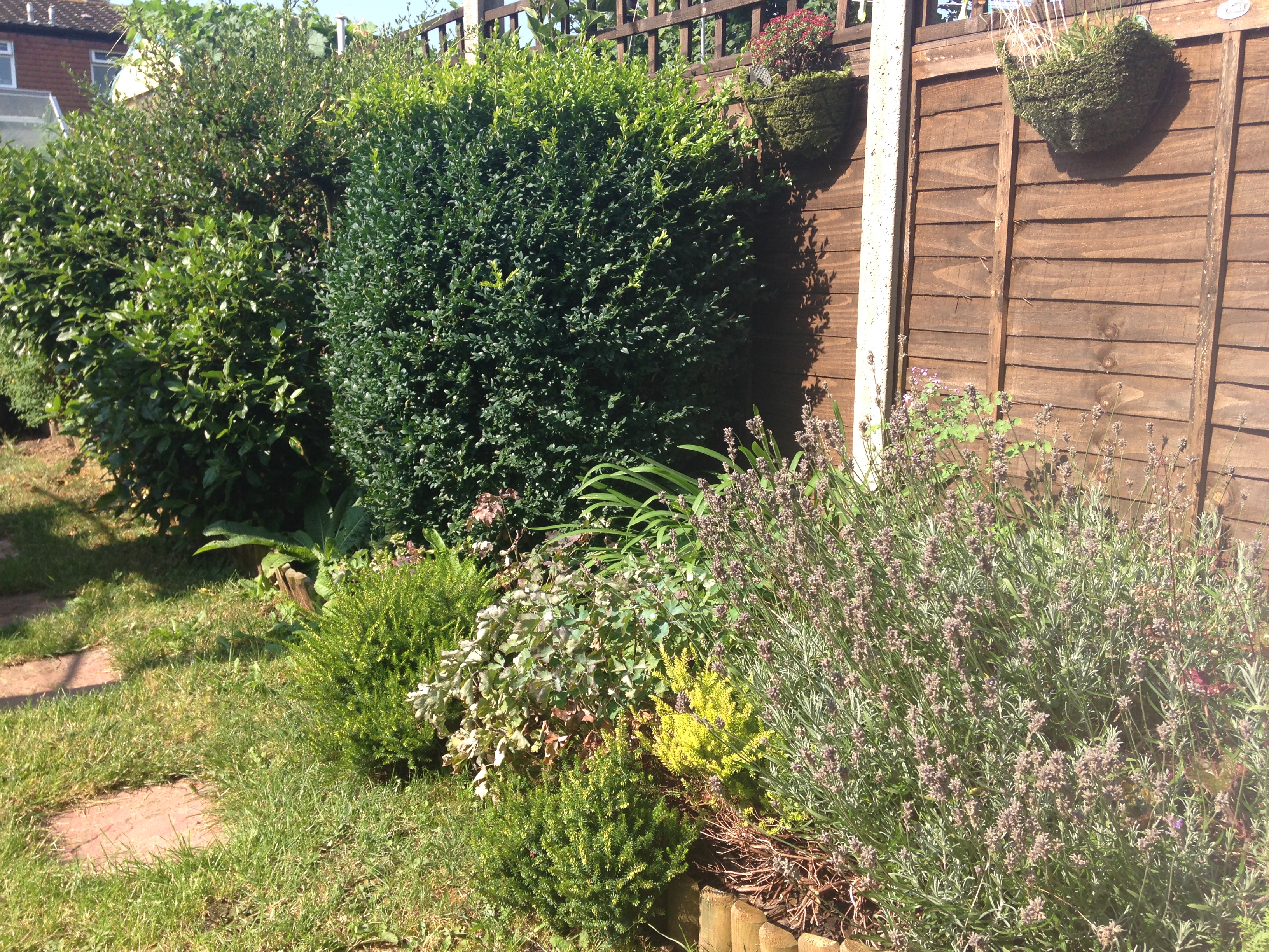 So that’s it. My little garden at home. With that and the allotment that’s loads to keep me occupied and out of any mischief that I could get myself into. It keeps me busy, but it’s great fun. Here’s the view I have of my garden from my back door. The tree at the very back of the picture (that is actually in my garden, just) behind the trampoline was bigger, until yesterday when it was hacked by my neighbours father. I wasn’t told, and needless to say I got incredibly cross!! But that’s all I’m going to say about that.