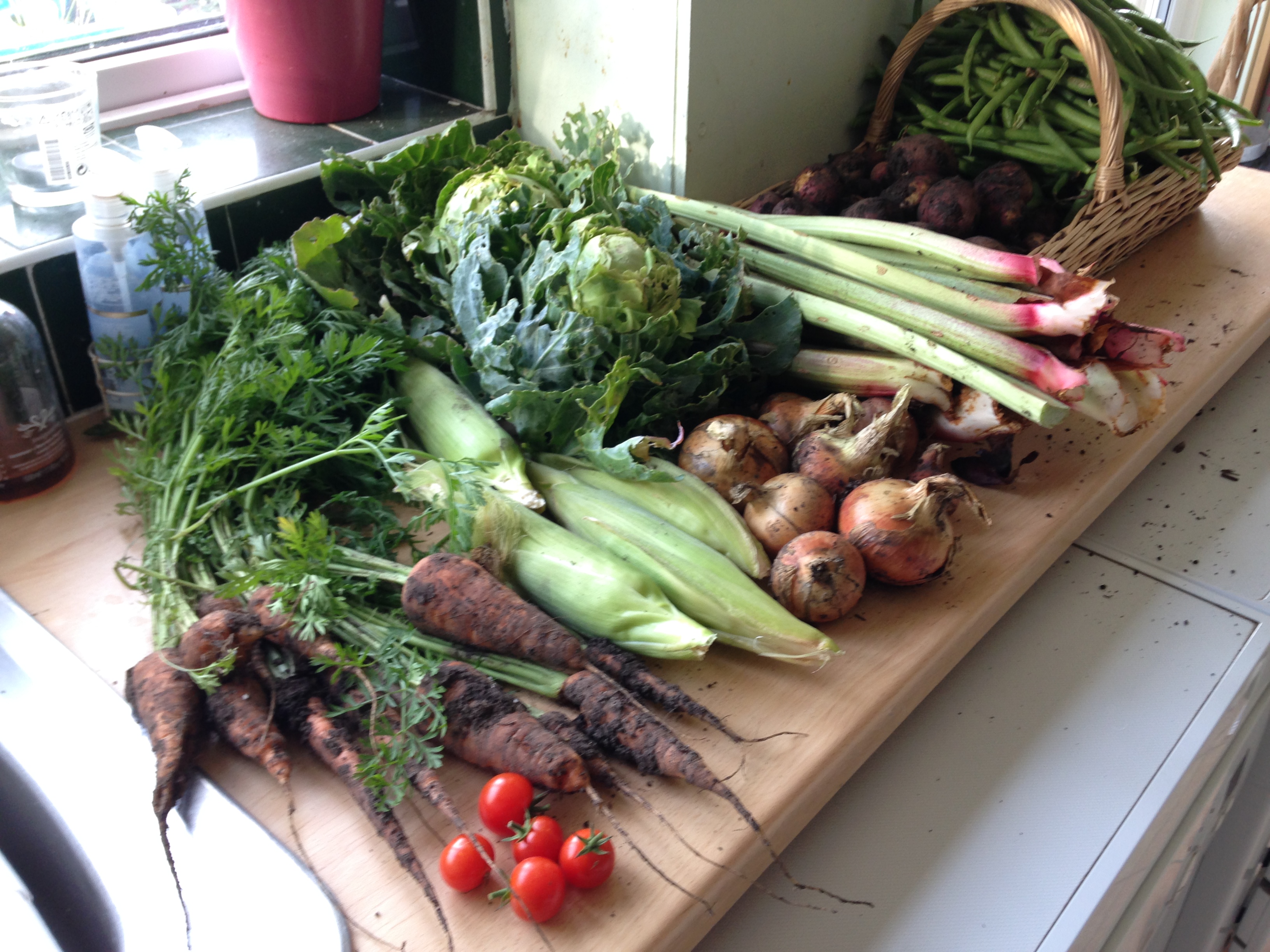 A huge massive “Thank you!!” to my sister Michelle for looking after my garden and allotment while I was away. Not that she had to do much watering, as apparently we had loads of rain (it was lovely and sunny in Spain). But she lives about 7 miles away, so even if all she needs to water is the greenhouse, she goes out of her way to come to mine. We arrived back from holiday on the Wednesday evening, so first thing on Thursday I went down to see how everything was getting on. I came back with an impressive haul: 2 Cabbages, loads of Potatoes, some Onions, Carrots, a whole bag full of French beans, some Tomatoes, 4 lovely heads of Corn and some Rhubarb. Now it’s the difficult decision of what to have with dinner tonight and the rest I’ll either store away or freeze. I think the Corn looks rather tasty, so that’s a definite. I’ll go any buy my sister a bottle of Sherry, as I know she really likes it. She’s a star, and I appreciate all she does. I did take a picture of my harvest, but my phone has just decided to die (systems failure apparently, which is rather bad), so I can’t show you a photo, so you’ll just have to take my word for it.