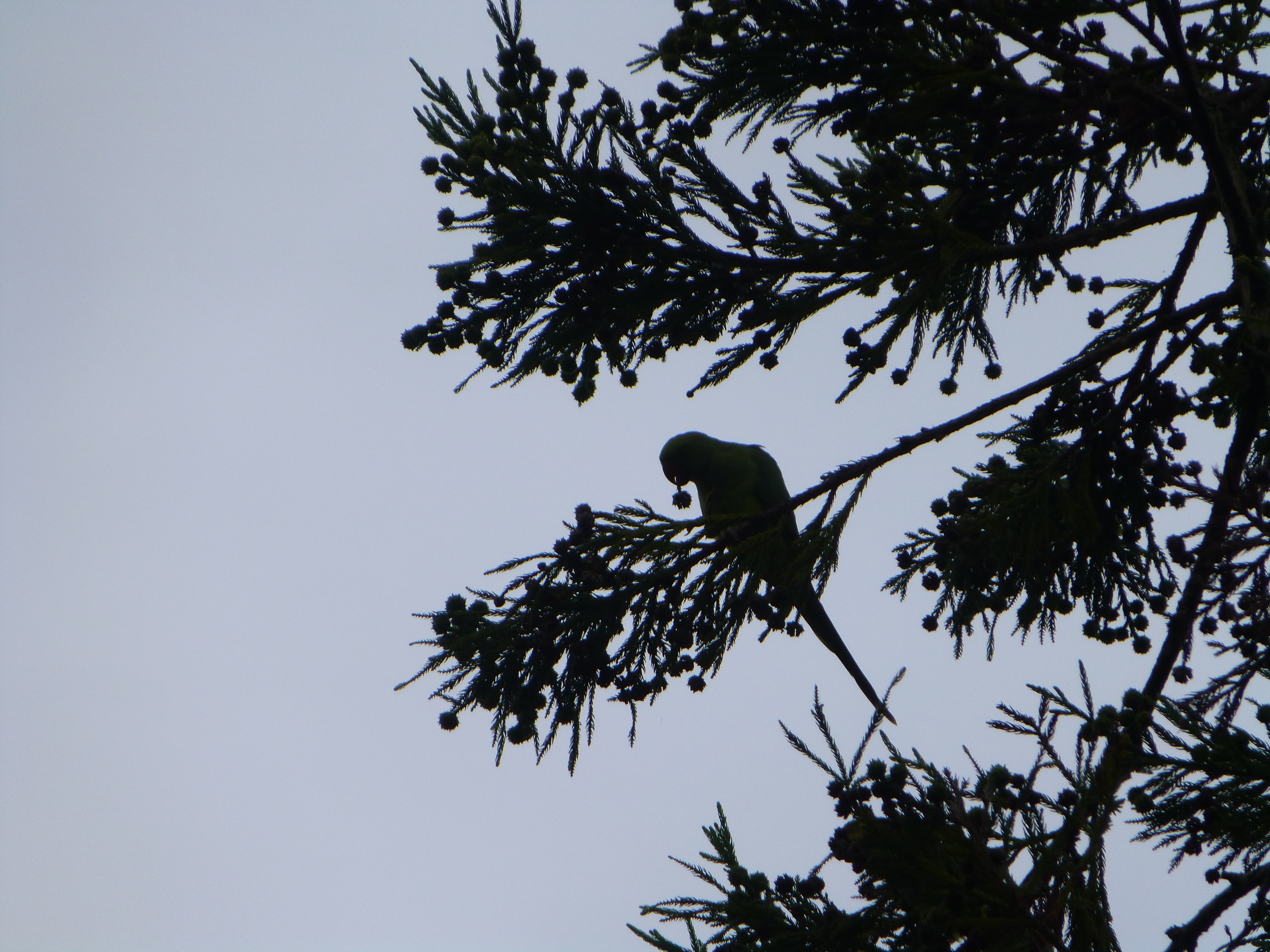 As we wandered further we saw dozens of parakeets flying over head. They were flying from tree to tree, eating the fir cones. They had wonderful grass green breasts, and they were easy to hear as they screeched so load!!