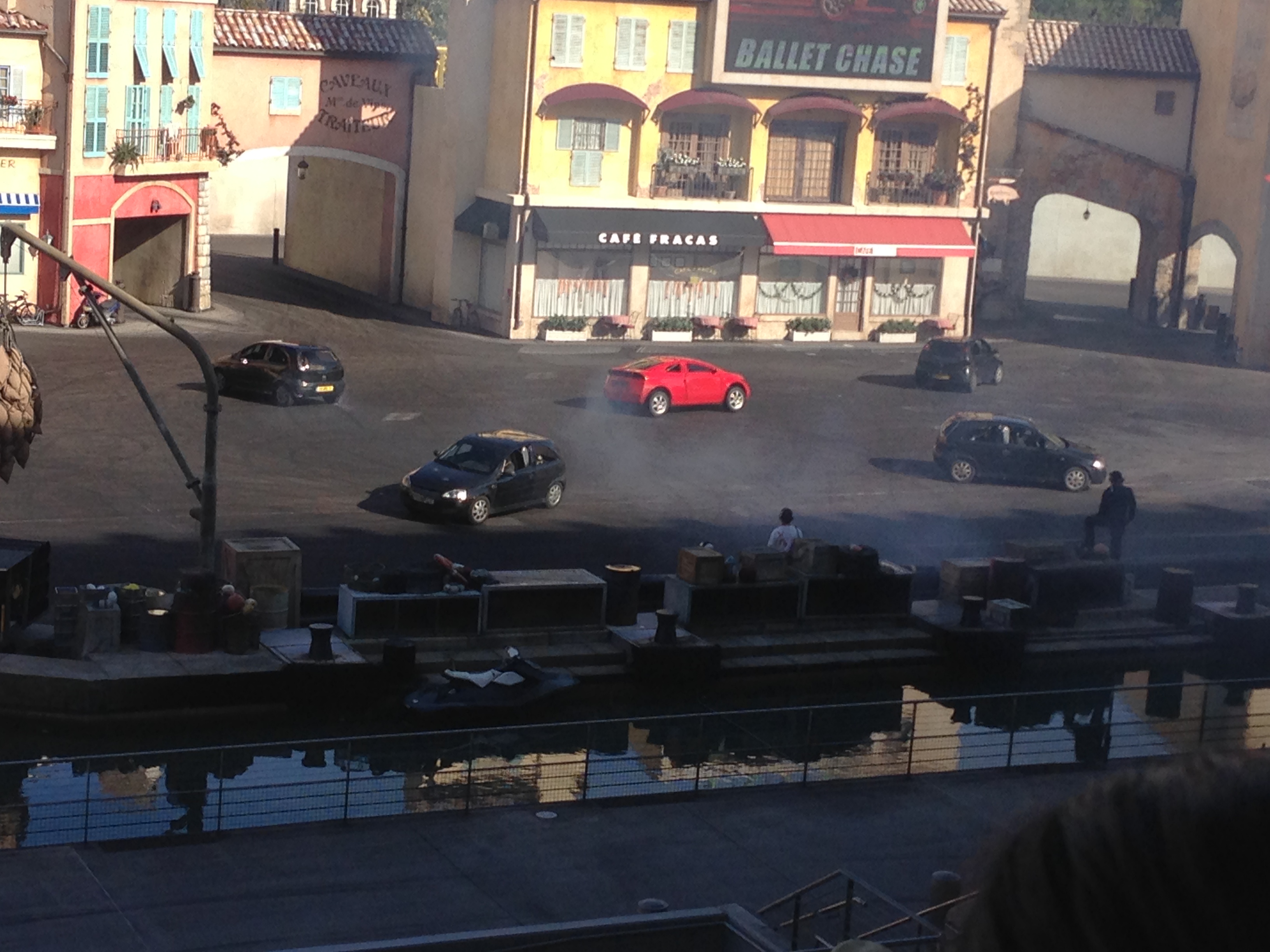 While they were enjoying their scary ride, I also enjoyed trying on various winter hats. I will do an entire blog about all the hats I found. Like George having to take a sip at all the water fountains in the parks, I had to try on all the hats. We all have to have our strange thing. Oh and talking about strange things, can anyone shine a light on the turkey leg phenomenon? They had them at all the parks, and people were eating them all day long. I know it’s Christmas, but I can’t help thinking about all those turkey’s hobbling round on crutches. Anyway, we then all met up and went to see a car chase show called “Lights, Motors, Action!”. Again it was like the Indiana Jones show, as it was like watching a movie being filmed. Some excellent driving, and to be honest a bit like the Sunday driving around where we live.