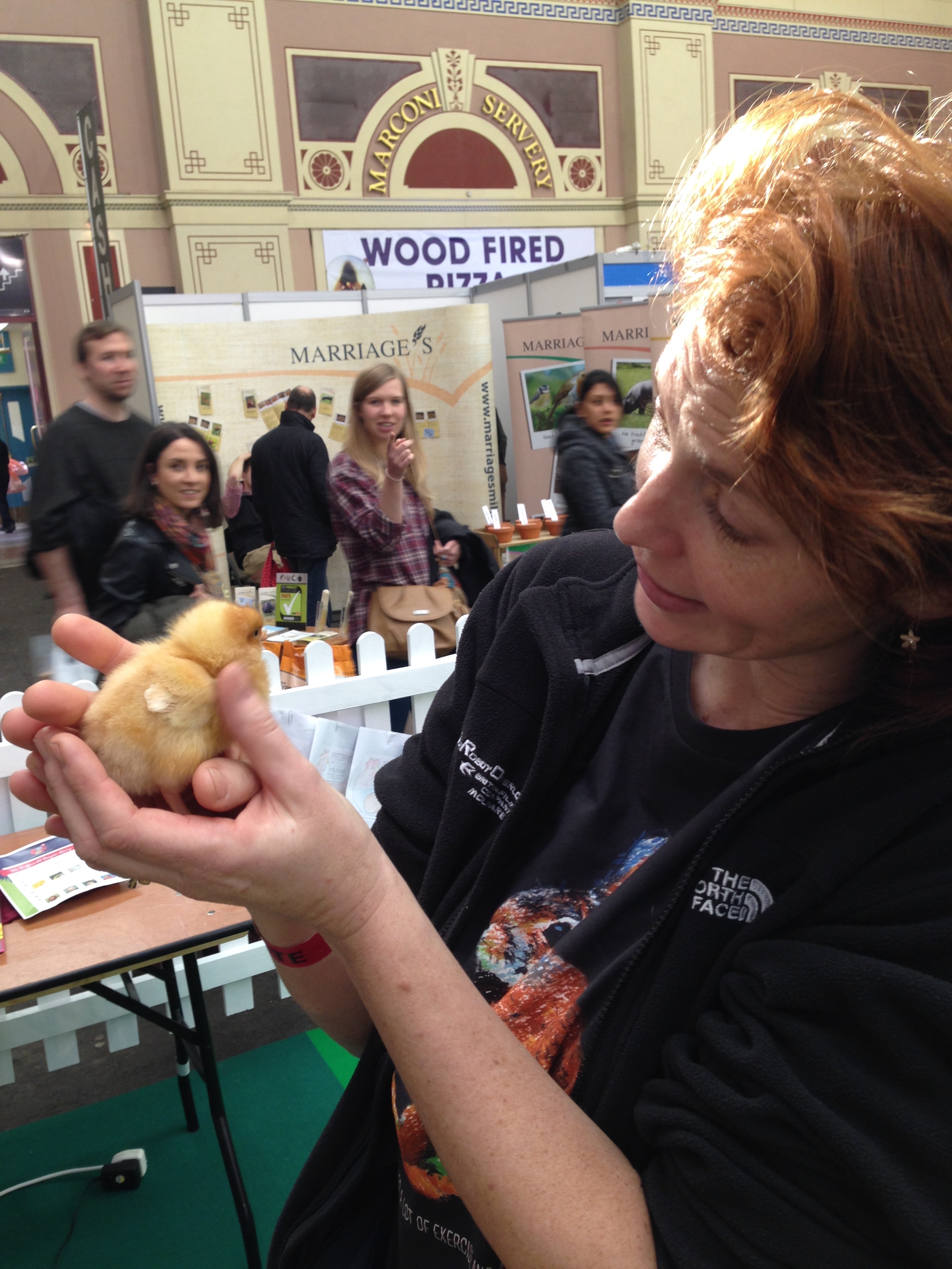 When we had a few spare minutes we went for a quick wander around the show to see what was going on. There was loads to see from various animals, bees, things that wiggled, garden tools and machinery, but I was straight for the chickens. The British Hen Welfare Trust were there, which is the same place where we go our 6 ex batts from. They also had little baby chicks which were only 5 days old. I had to hold one, and lucky it didn’t crap in my hand.