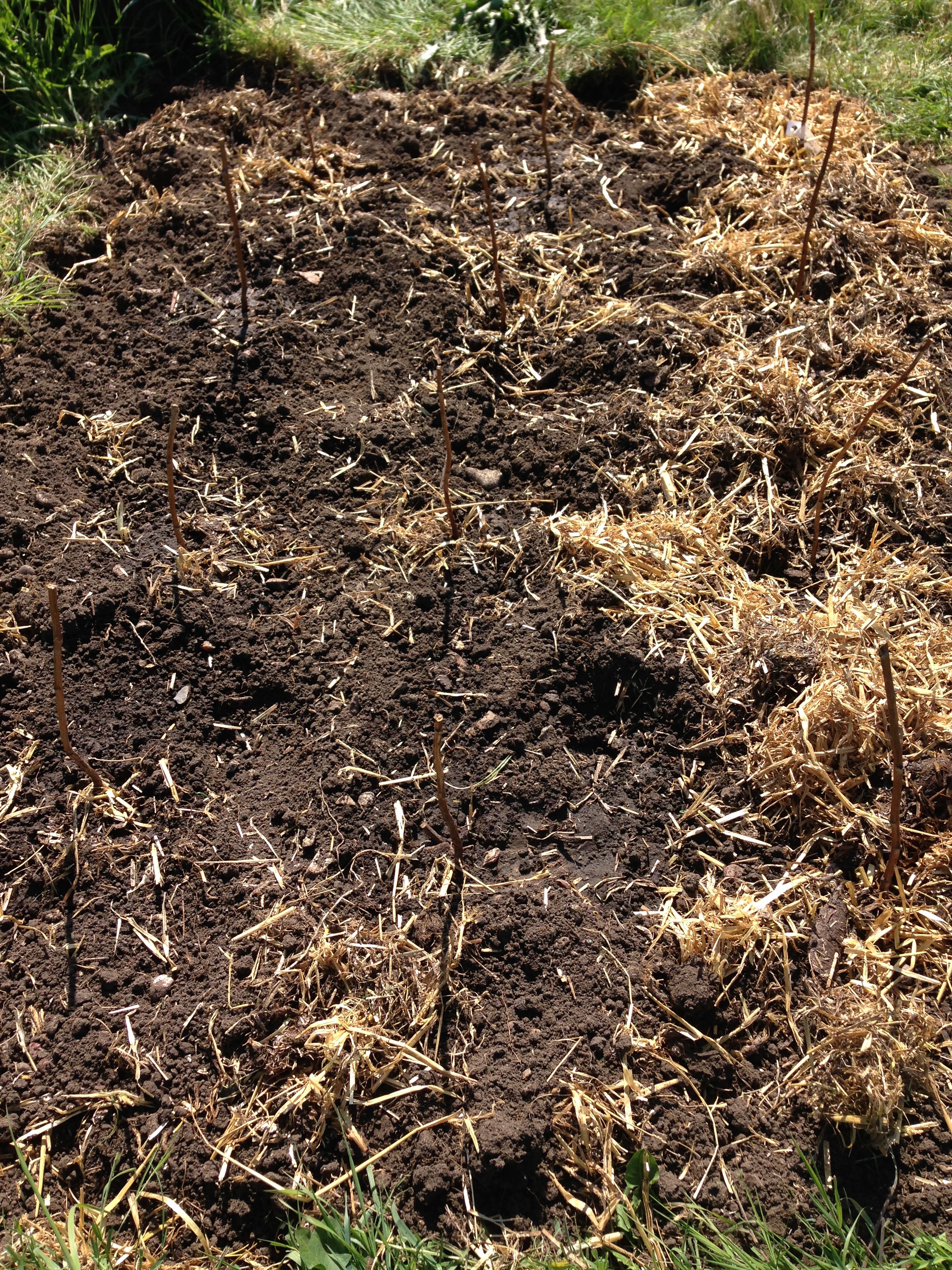I’ve been slowly sorting out my fruit bed which has been left to fend for itself over the last couple of year. But this year I’ve promised it that I’ll sort it out and bring some order back to it. Today I planted 12 new Raspberry canes “Glen Ample”. The canes that I did have, had lasted for about 10 years and were giving me fewer berries each year, so I thought that it was a time for some new ones. The new ones most probably won’t give me much fruit this year, but hopefully next year I’ll have loads and then I can make some Raspberry jam. We do like Raspberry jam, with pips and all!! Once they were in I finished digging over another large bed, and started on another. I had a stroll round my plots to see how many beds I’ve got left to dig over, and what state they’re all in. I was pleasantly surprised to find that the only really bad on is the one I’m working on at the moment, the rest are in a good way and just need a little bit of turning over. Oh, and the massive overhaul of the fruit bed of course. I feel that I’m ahead of the game at the moment which is good. I’m a little behind in sowing seeds though, so after work tomorrow morning I’ll try and catch up on those. I harvest the first of the Rhubarb and bought home some grass clumps for the chickens. Well they were very good girls today and laid 1 egg each. They’re such good girls.