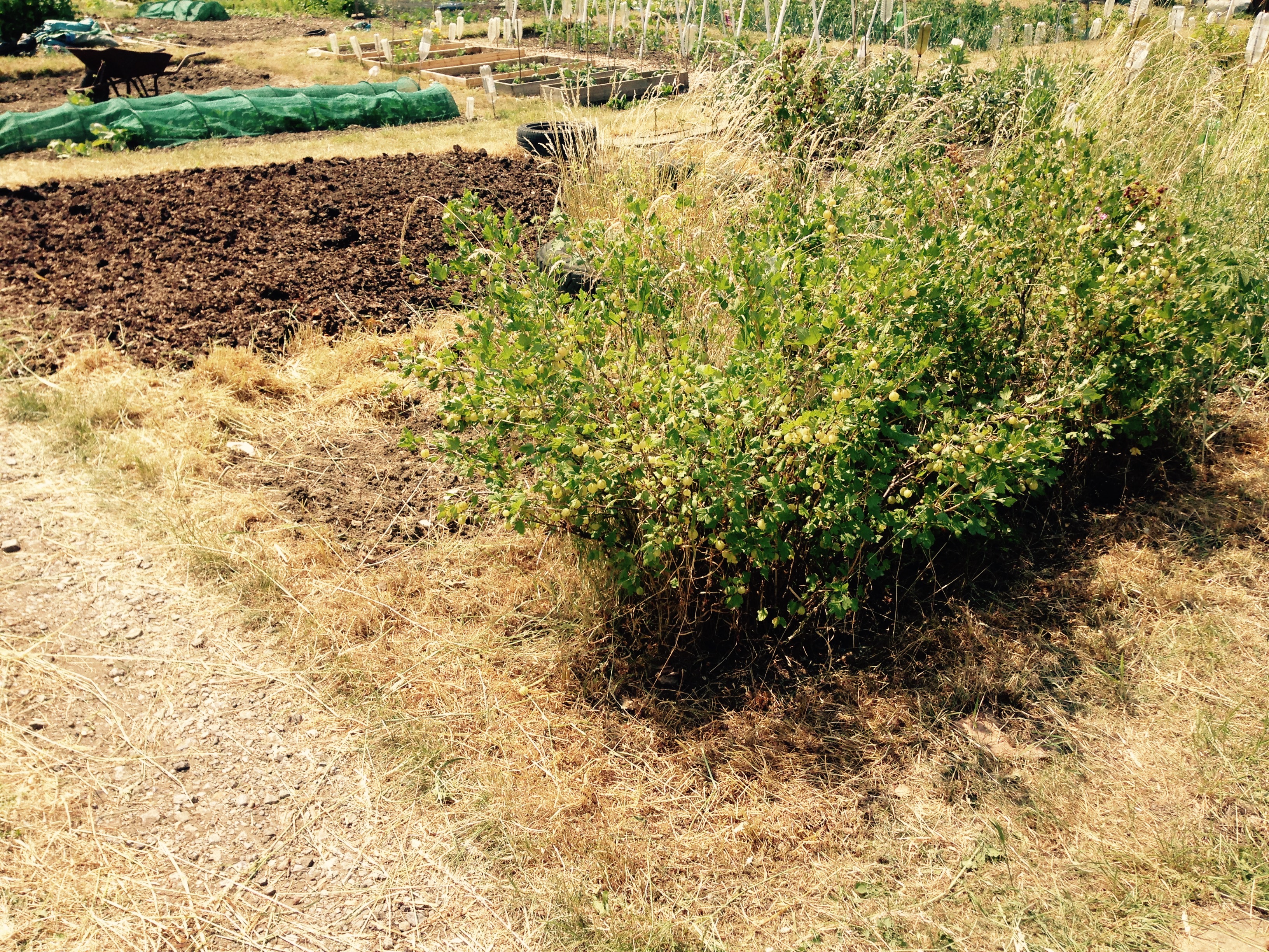 Oh my goodness!! I know they said it was going to be hot, but wow!! It sure was interesting today up the allotment. Robbie came with me agin today, but I said that we’d finish at noon. Staying any longer would have just been stupid!! We took it easy, and spend most of the morning shearing the long grass, weeding, and then watering. Robbie has been such a great help these last few days that we’ve managed to sort out half of plot 1 already and get it looking great.