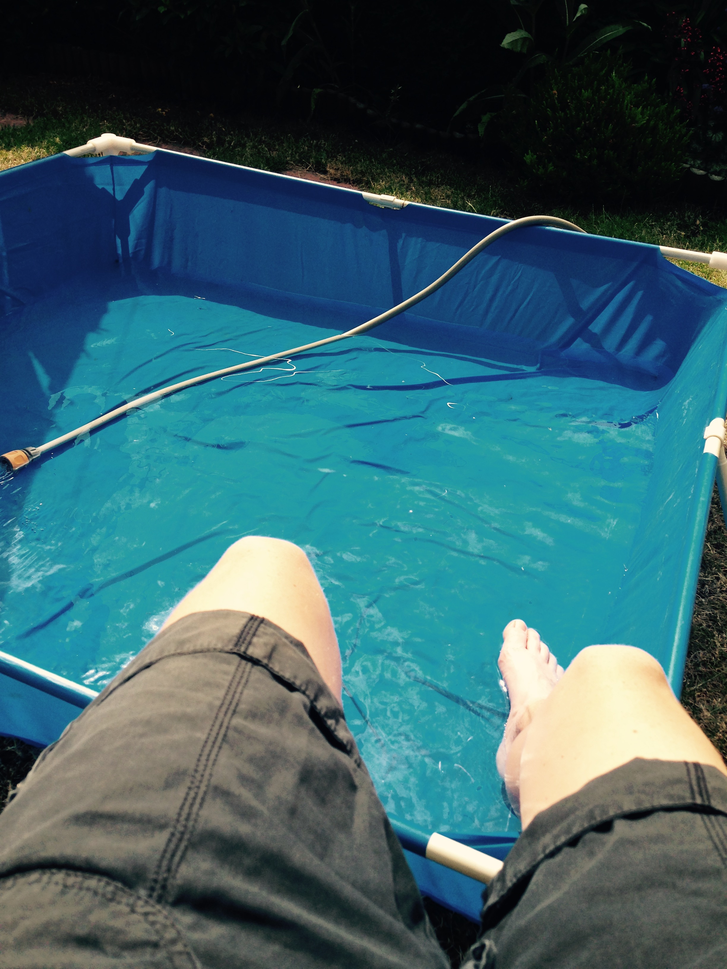 We then moved onto the very large fruit bed that I have, and cut the grass round the edges and then started to dig over the soil. We kept on swapping jobs as it was very hot. We also kept stopping to have a drink. I made sure he was wearing his hat at all times, and that before we left he had on sun cream. Occasionally there was a little breeze, but it was a very hot breeze so wasn’t cooling in the slightest. After I’d taken him back home I then had my lunch and then went back down the allotment for another hour (not sure that was a sensible thing to do really!). Just as I pulled in the gate there was a message on the radio saying to stay out of the sun until after 3pm!! Well it was 2pm and I was on the allotment so it was a bit late. I left to come home at 3pm. Once home I got out the kids paddling pool (I’ve had it for about 10 years now and got it from Woolworths), put it together and then put some cold water in it. Because the hose had been sitting in the sun, the first lot of water that came out was really hot. But soon the cold water came through and I sat on a chair with my feet in the lovely cool water. It was bliss!! Later the kids came to join me, and Emily used the washing on the line to shade herself from the sun. Once I’d cooled down I then started potting on some more of my F1 Tomatoes that I’m keeping in the greenhouse at home. My Black Prince and Cherokee Smokey Purple are all now in 6 inch pots. I’ve put more bits in the car to take to the allotment tomorrow, but the weather looks a little iffy, so I’ll have to see when we get to tomorrow what it actually does. As dinner was cooking I again cooled myself in the pool. You may not be able to swim in our pool, but just putting your feet in cools you down beautifully. We reached the dizzying heat of 36 degrees today, which according to my weather app was hotter than where my parents live in Spain, Orlando and LA!!