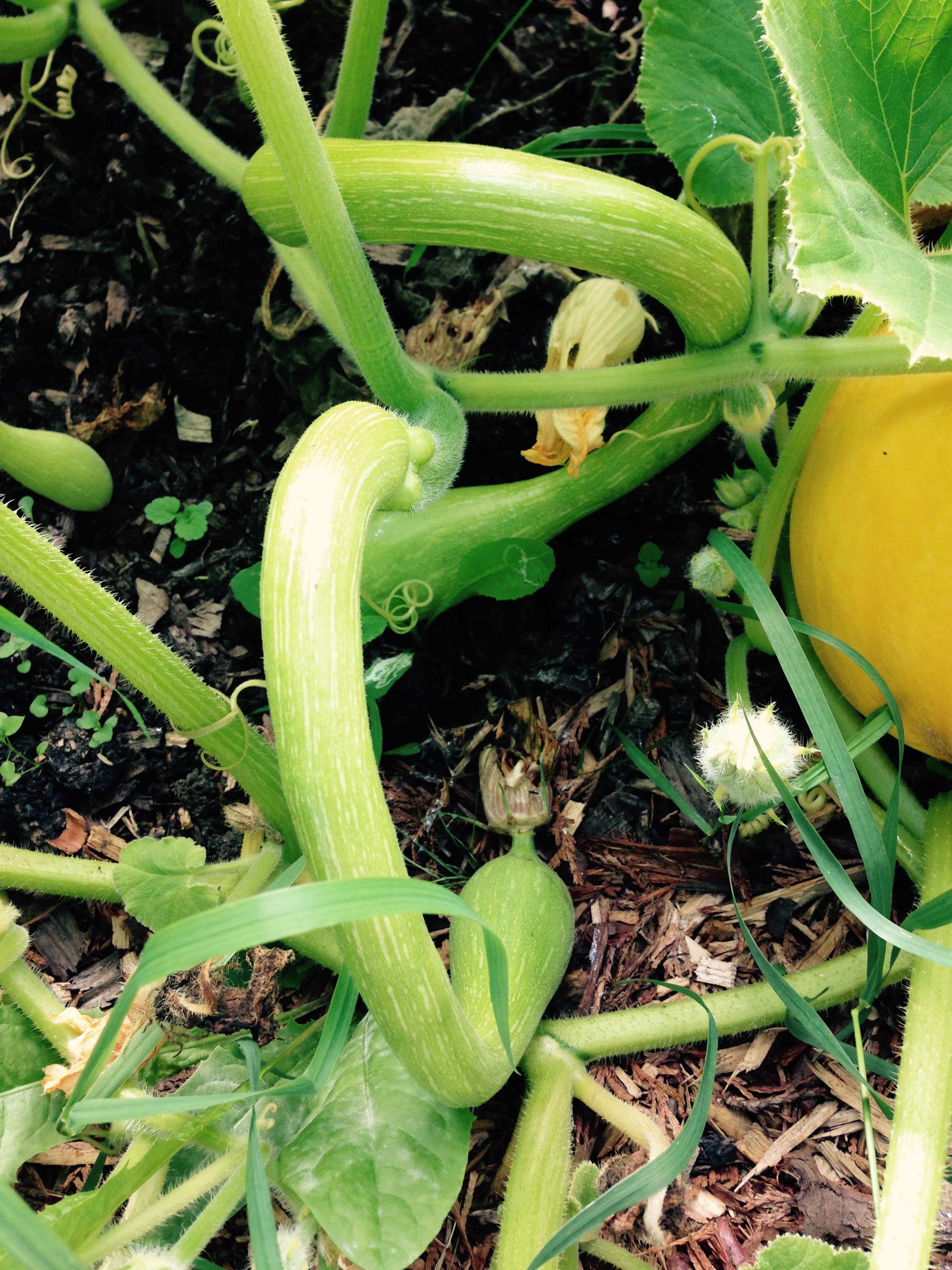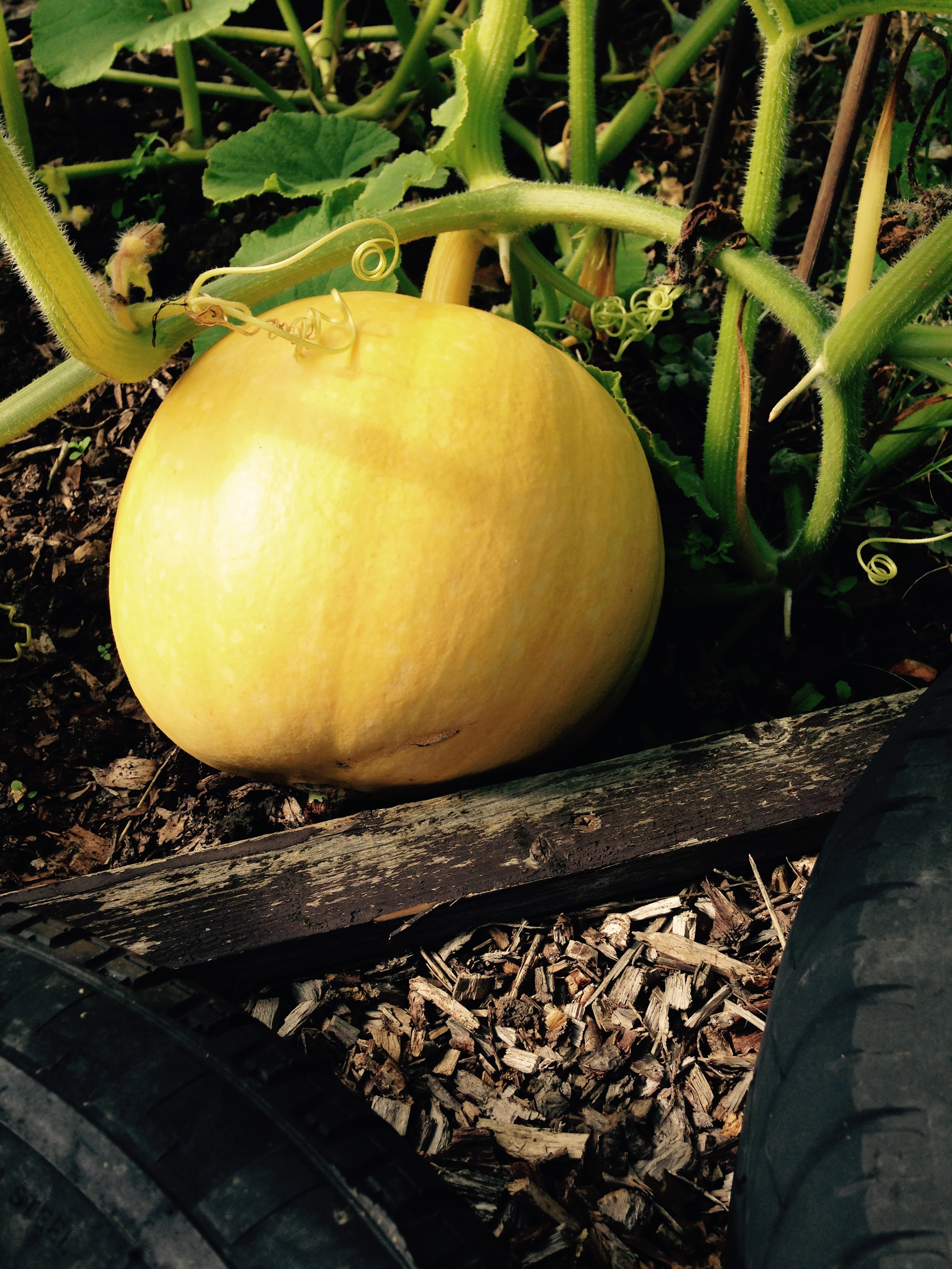 Pumpkins are growing well. This one is bigger than a football at the moment. Keep growing my beauty!