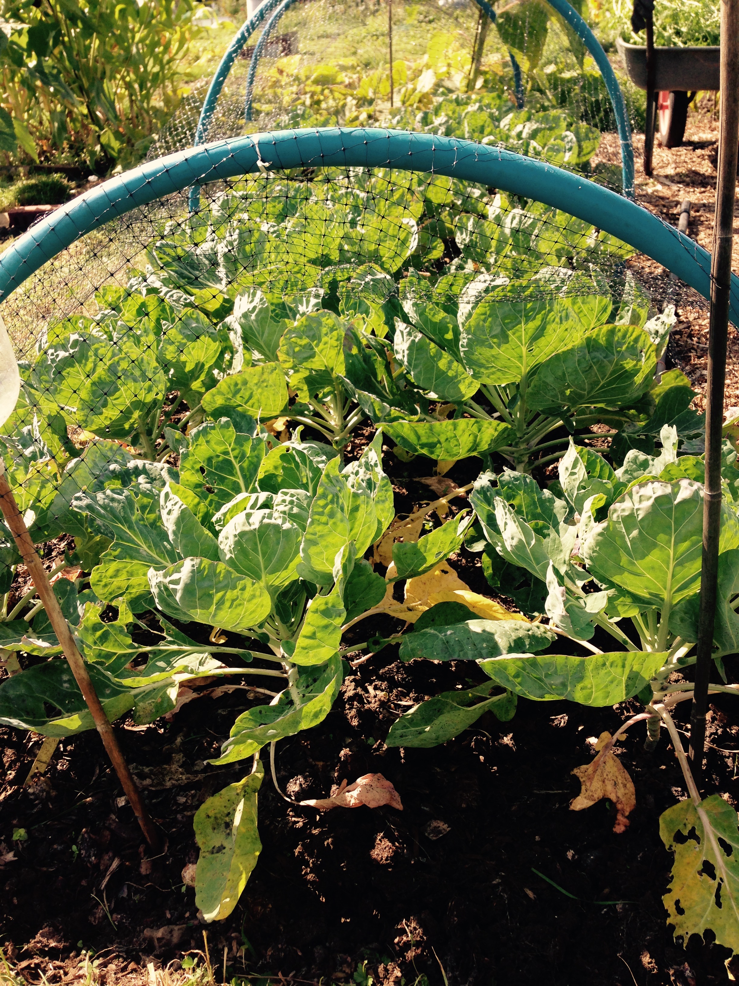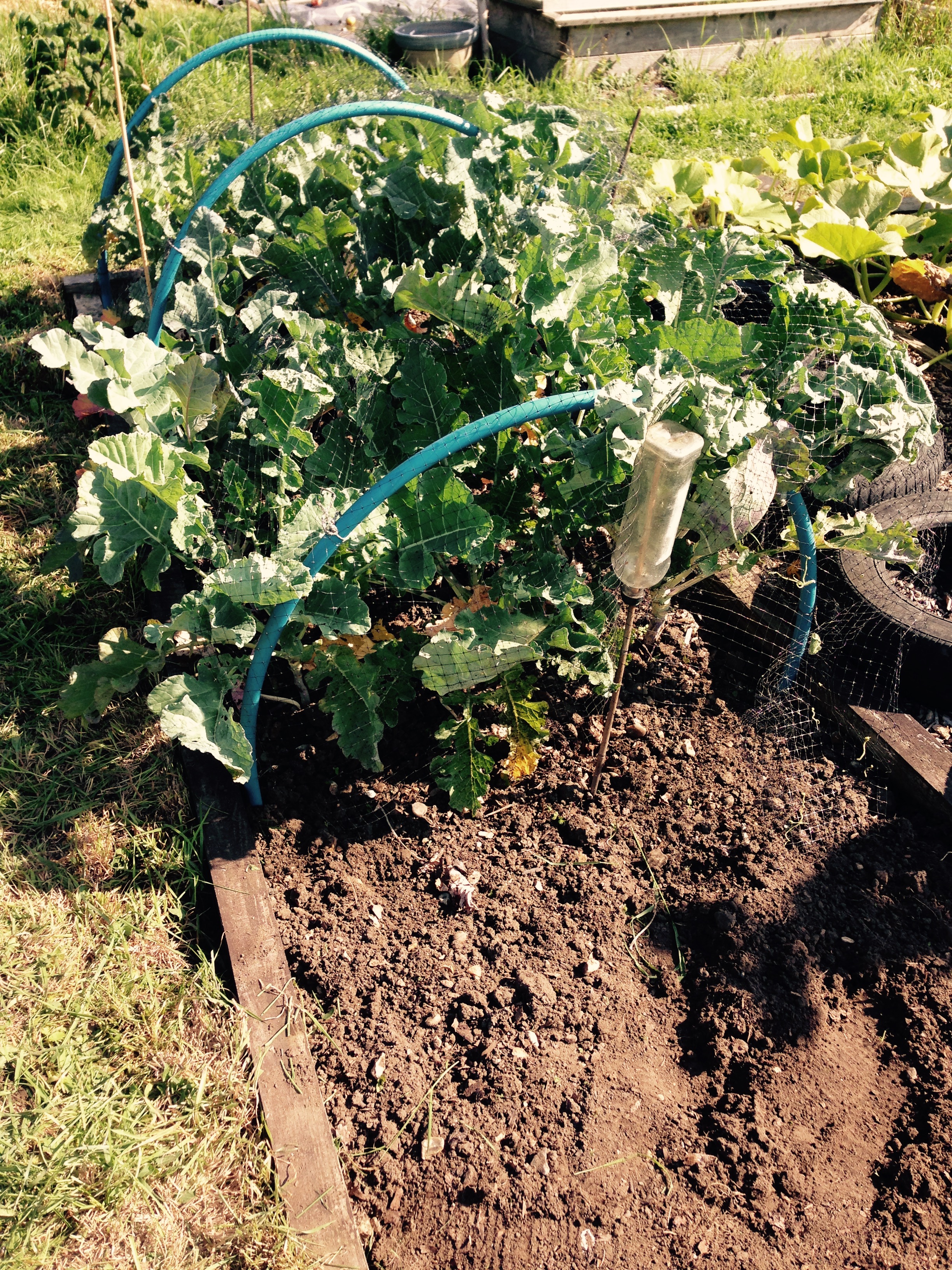 I then moved onto the next bed which has the Brussels Sprouts growing in. Again make sure that you keep these covered, for the same reason. They’ve still got a lot of growing to do, but hopefully I’ll start picking some by December and then all the way through to February. I’ll show you how I cook them when I come to it. It’s very special and there’s not a soggy sprout in sight.