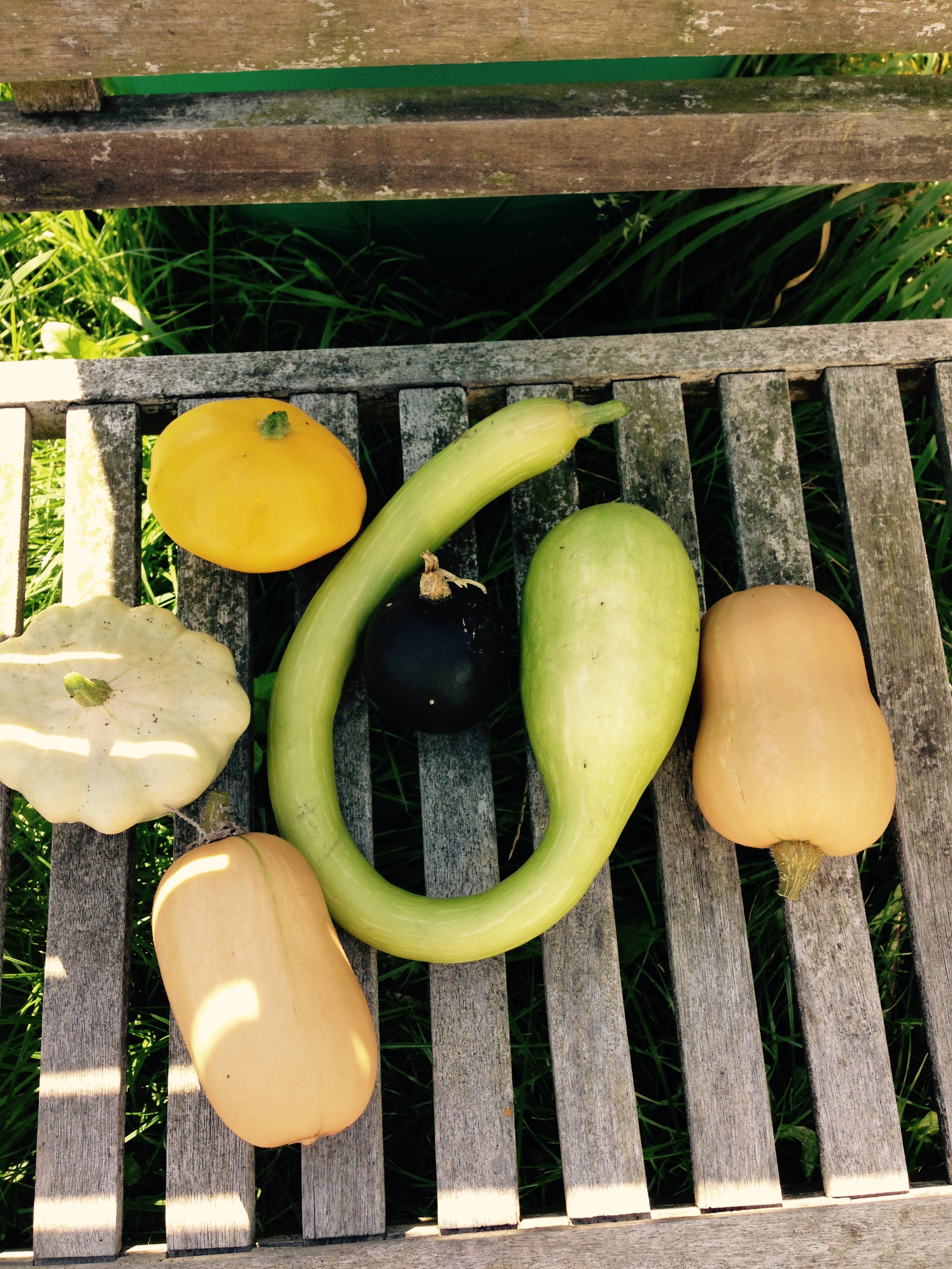 Today was a wonderful day. I’ve not been to my allotment for a while now, what with work and the weather getting in the way. But today I was free and the weather was perfect, so off I went with my harvest basket in hand to see what I could find. Quite a lot as it turns out. So if you’re sitting comfortably then I’ll begin. I started off harvesting the Butternut Squash. The leaves have started to go blotchy and loose their greenness (is that a word?) and the stems of the Butternut are no longer green so they won’t grow any more. They’ve done really well this year, I’m not sure what I did, but it worked. I’ll just have to try and repeat it again next year. I harvested 20 from about 5 or 6 plants which I was really impressed with. I have 2 little ones with the smallest weighing 3.9 oz and then 16 are what I’d call “normal” size, and then 2 rather large and oddly shaped ones. The largest of these weights a whopping 2lb 12.9 oz!! I’m rather impressed, but I’m sure you’ll agree with me that it looks a bit like something else. I’m not saying what, but you can make your own mind up.