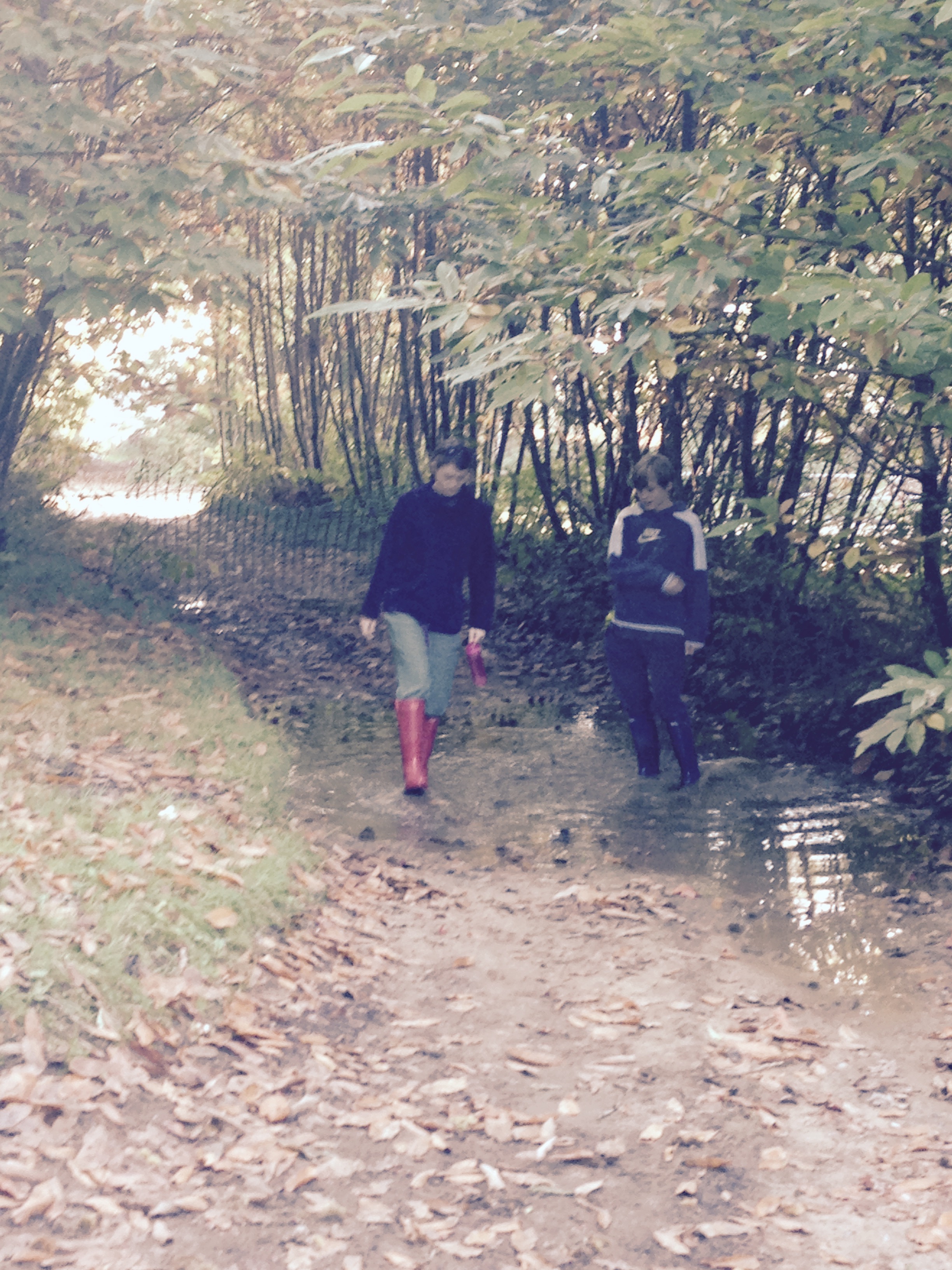George spotted a male pheasant in the undergrowth and managed to get with in about 2 metres of it before it saw him and ran away. They’re really beautiful birds with all their “beautiful plumage!!” We walked around for about 2 and a half hours before we made our way back to the car park and home. But I didn’t want messy wellies in the car so the only way to get them clean is to wash them in a puddle. Well they’re wellingtons after all and that’s what they expect.