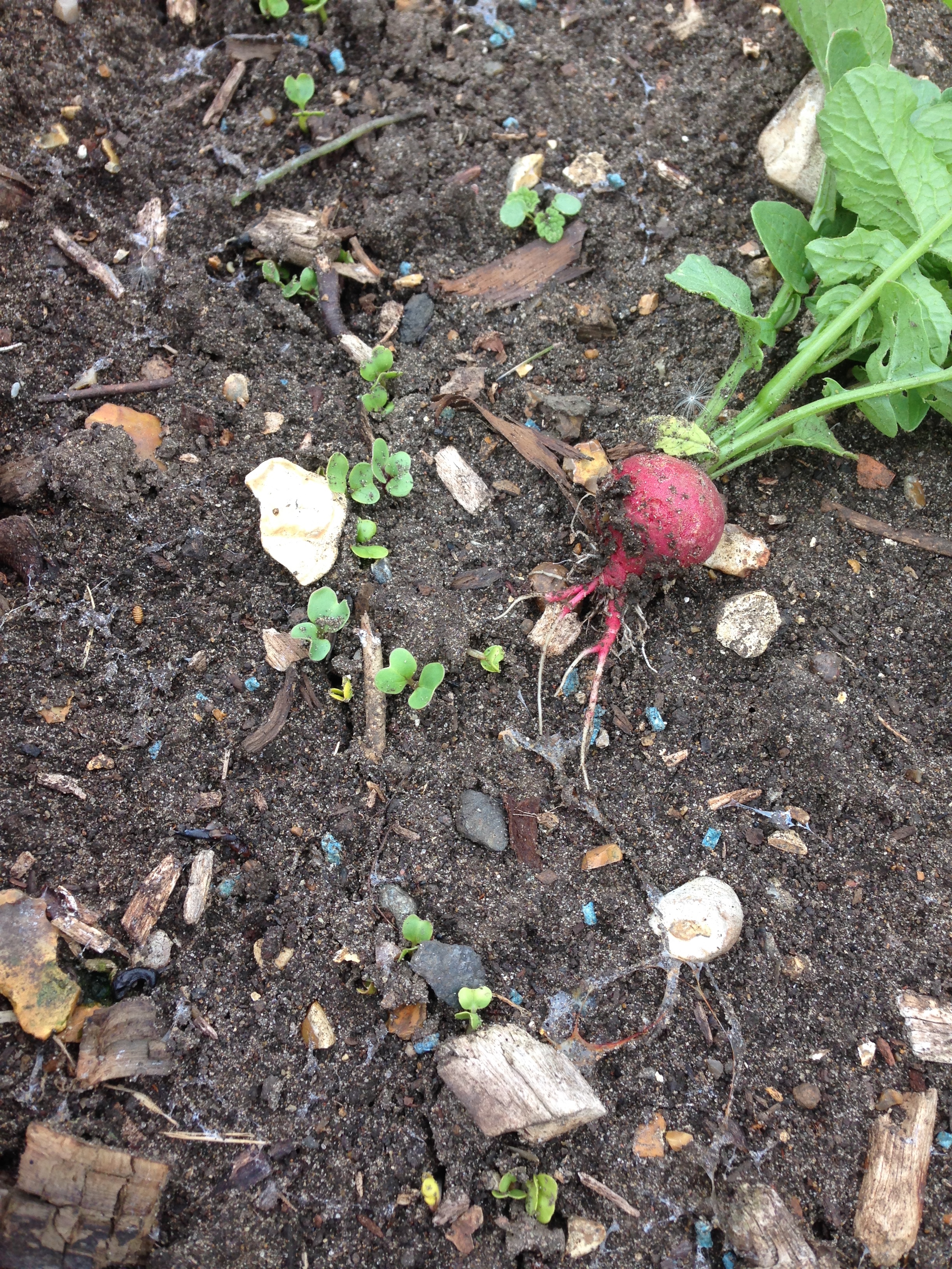 The first Radish of the season showing the newly germinated ones how it’s done.
