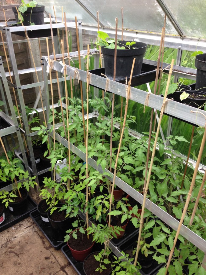 And the right hand side. The Cucamelons are growing well, just a few more plants to pot up.