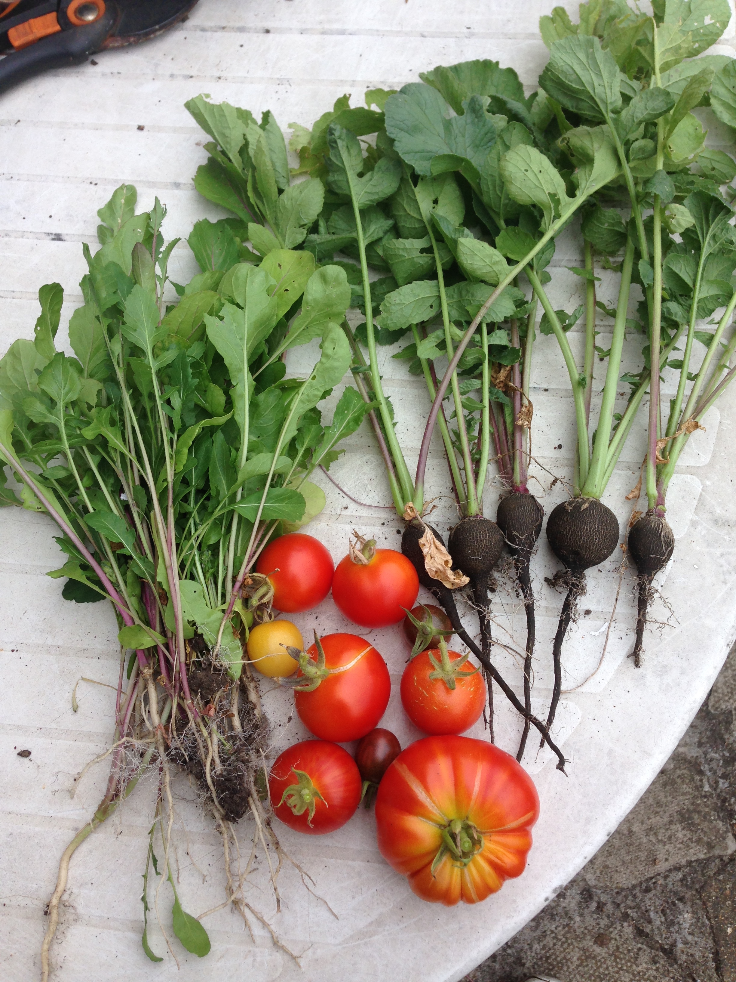 Rocket, Black Radish and a variety of Tomatoes! Yum!!