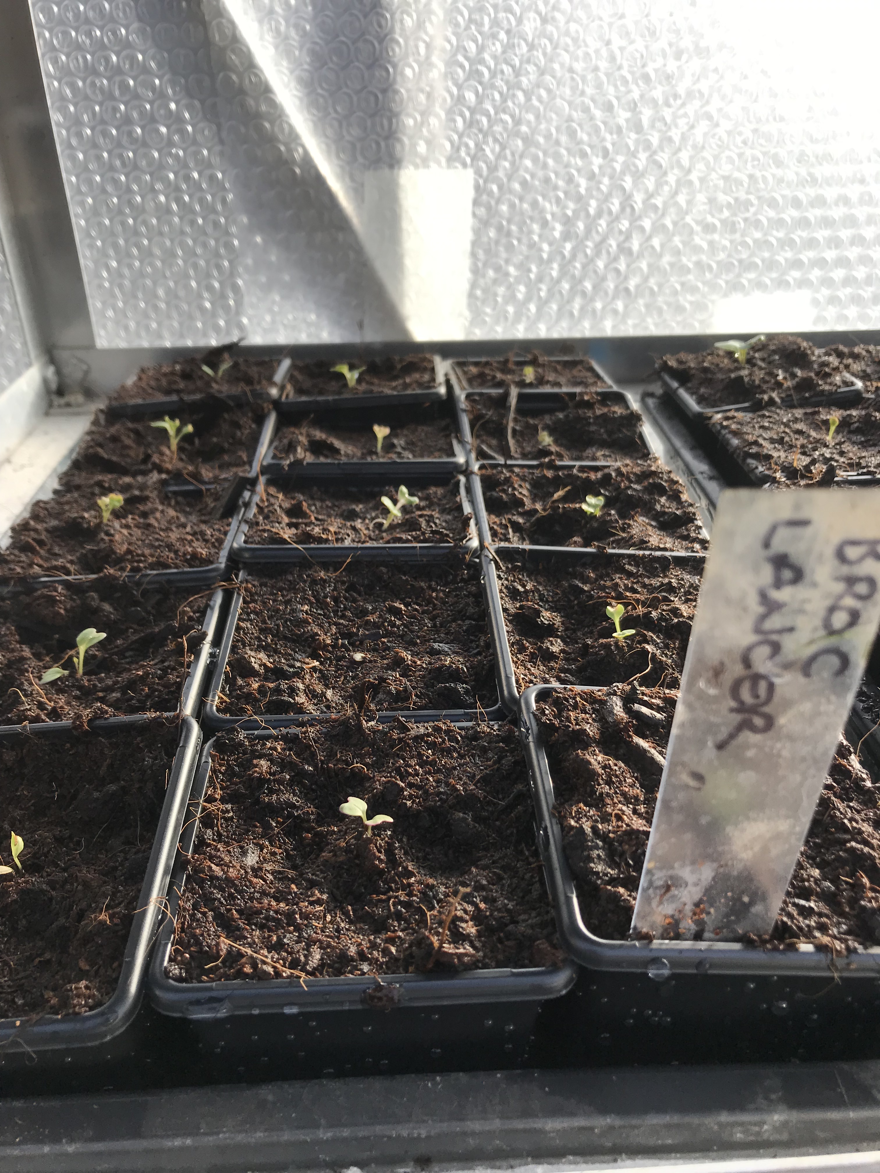 While the little house was drying I pootled about in the garden and greenhouses. I pricked out loads more brassica, including my favourite Broccoli Lancer Mixed. I love this it looks so beautiful and tastes amazing.
