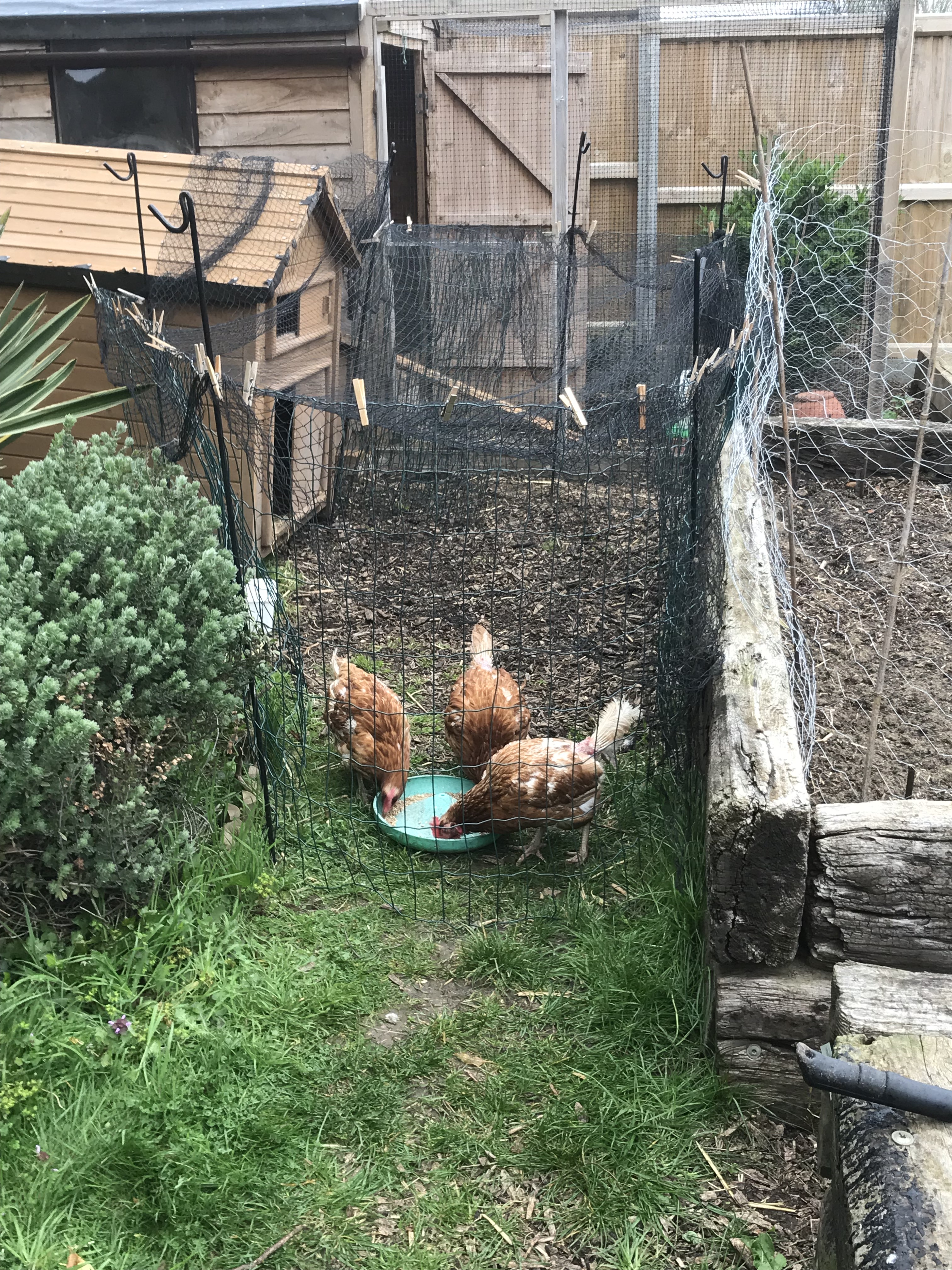 Two of our chickens Bert and Steve are getting along very well together, and there is now no more arguing, pecking and running away in panic. So the wire I’ve had in the big house and run has been removed, and they are now sleeping together (not in that sense), eating from the same trough and laying eggs in the same place. All is happy with Bert and Steve. Yes they are all girly hens, and yes they have boys names. It’s best not to ask. The other 3 girls are still in the small house, and with the help of the kids we’ve moved their house, which is now next to Bert and Steve, and I’ve given them a slightly smaller run. This means all the chickens can see each other all the time now. They’re been out in the garden all together and seem to be getting along quite well. There are the occasional pecks from Bert, just to remind them she is boss. I now have my second brassica cage back, and it’s all ready for some brassicas to go in very soon.