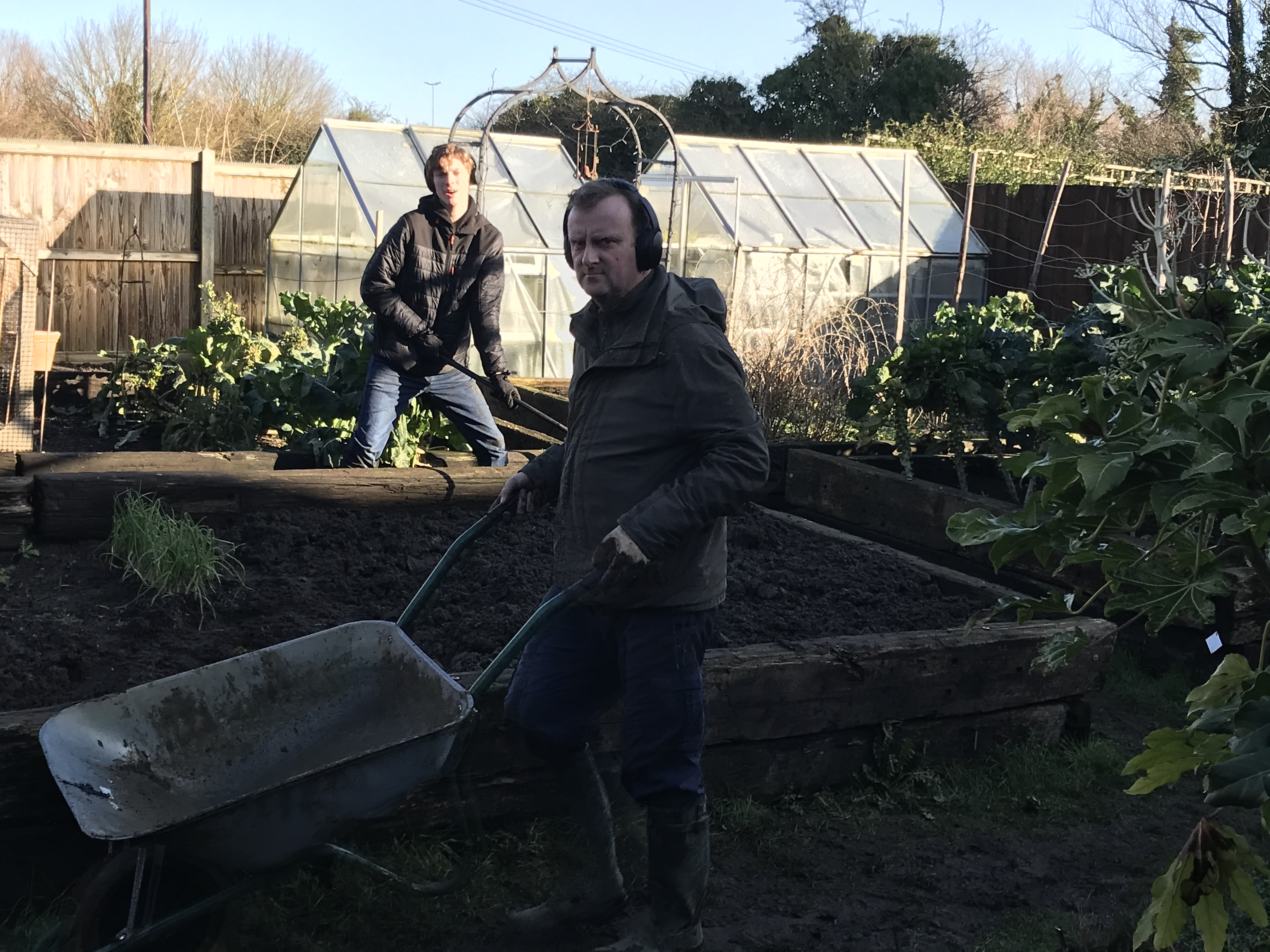 The day was cold, but sunny, so we all put on lots of layers and out wellies and went to shovel 5 tonnes of soil into the raised beds. It’s been nearly three years since they’ve been up and the soil has settled quite a bit so needs topping up.