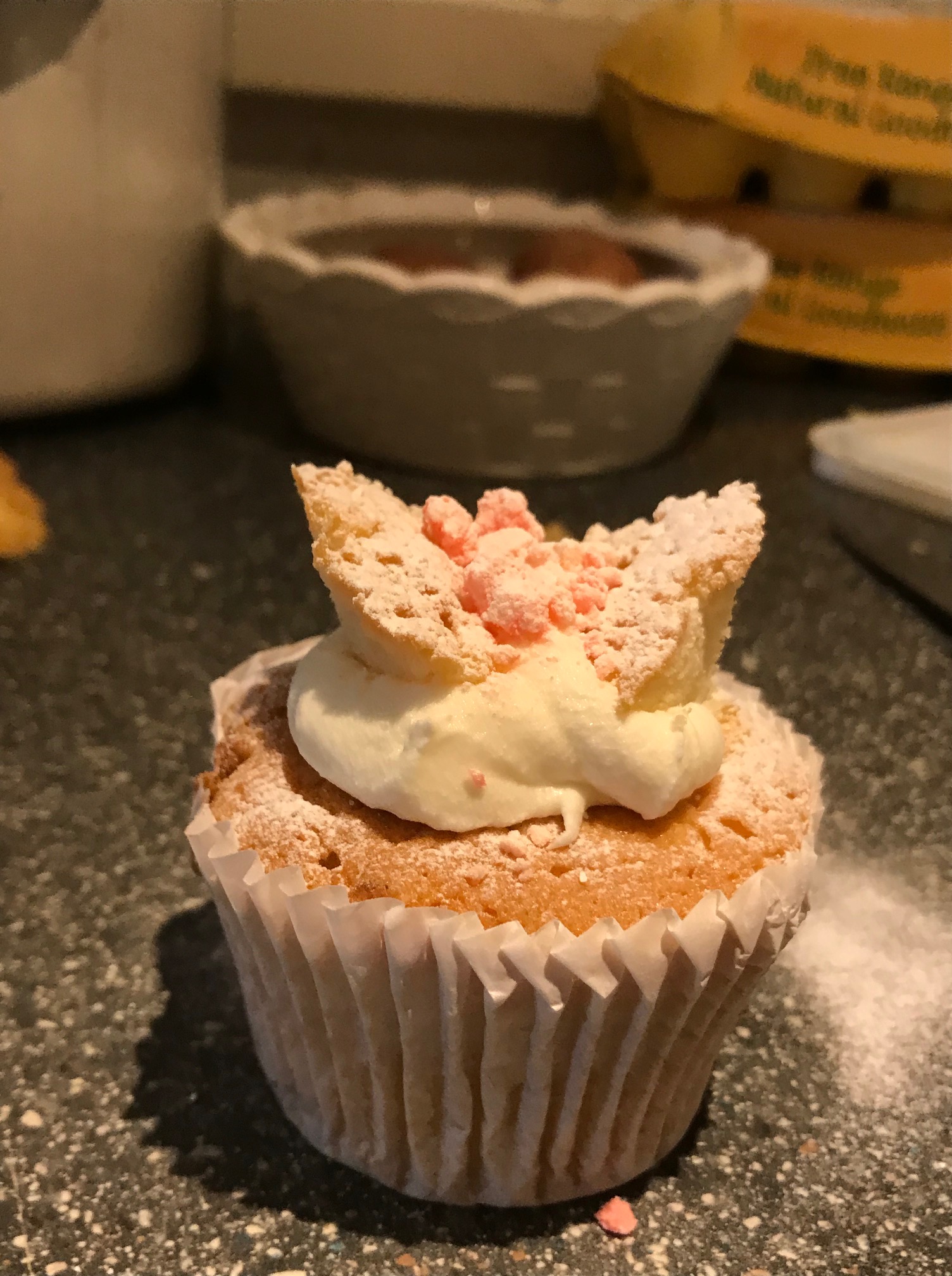 We had a simple breakfast of freshly baked croissants and fruit juice. A platter lunch with french bread, salad, meats, cheeses, olives, sausages rolls and loads of other bits. For pudding some lemon butterfly cakes and as it was a special day they had fizzy and I had a beer. Look it’s the weekend and it’s Mother’s Day. I’d also worked very hard all week, and worked on Saturday tidy four large beds and then planting them up for our local pub. I’ve not worked on a Saturday for 16 years…..I don’t know why I’m trying to justify to you all why I had a beer with lunch. I’m a grown up and forty mumble, mumble, mumble years old so I can do what I like. Dinner was roasted chicken drumsticks in a BBQ marinade, couscous and roasted veggies…..and another cake for pudding.