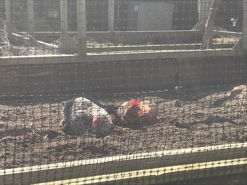 Because the weather was beautifully warm and sunny and as I was out in the garden the chickens felt that they should be as well. If I let them wander round the garden (which due to bird flu you have to keep them in an area that is netted on the top as well as the side) they would get into all sorts of mischief. Fortunately I have two rather large brassica cages that I’m not using at the moment, due to the fact the brassicas are still in the greenhouses. So these are perfect for impromptu runs for the chickens to play in. So in they went to have some fun and play in the soil without me having to keep a watchful eye on them all the time. After a good scratch about it was time for them to have a dust bath. They were very happy lazing around in the sun stretching their legs and wings out and enjoying life.