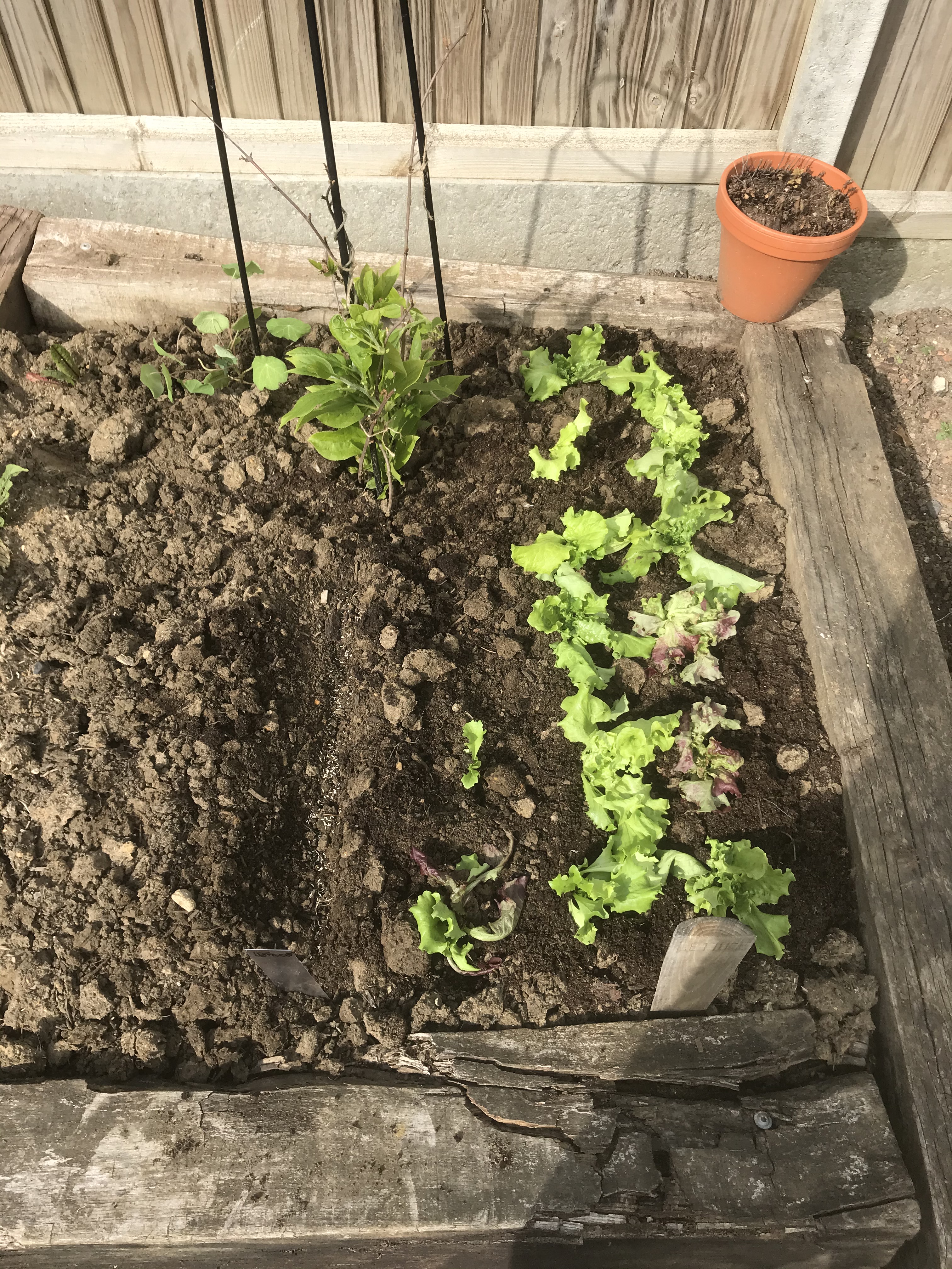 In one of the small beds at the back I planted out my lettuce and then sowed a few more lettuce seeds in a row next to it.