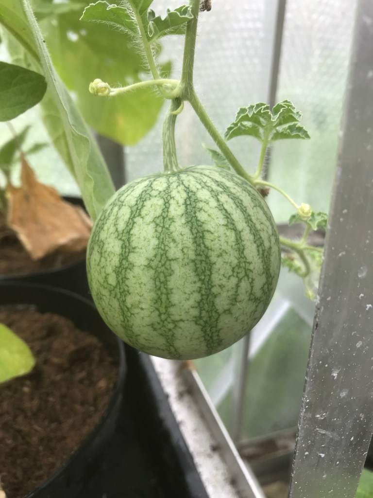 The various fruits and veggies in the greenhouses are doing ok. The Okra is just starting to flower. The first of the aubergines has just started to appear, there are loads of flowers so hopefully more fruits soon. I have about half a dozen melon fruits, all various sizes with the larges about the size of a tennis ball. And the tomatoes are starting to ripen, although not as well as last year.