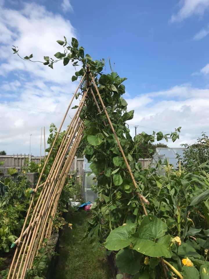 The ones I got were long enough to wrap round the canes twice and then pull them tight enough so hopefully they won’t drift apart again. I think when the beans have finished I’ll leave the structure in place and will maybe grow cucumbers or cherry tomatoes up them next year. You should never grow beans in the same place year after year, so I’ll have to put them somewhere else next year.
