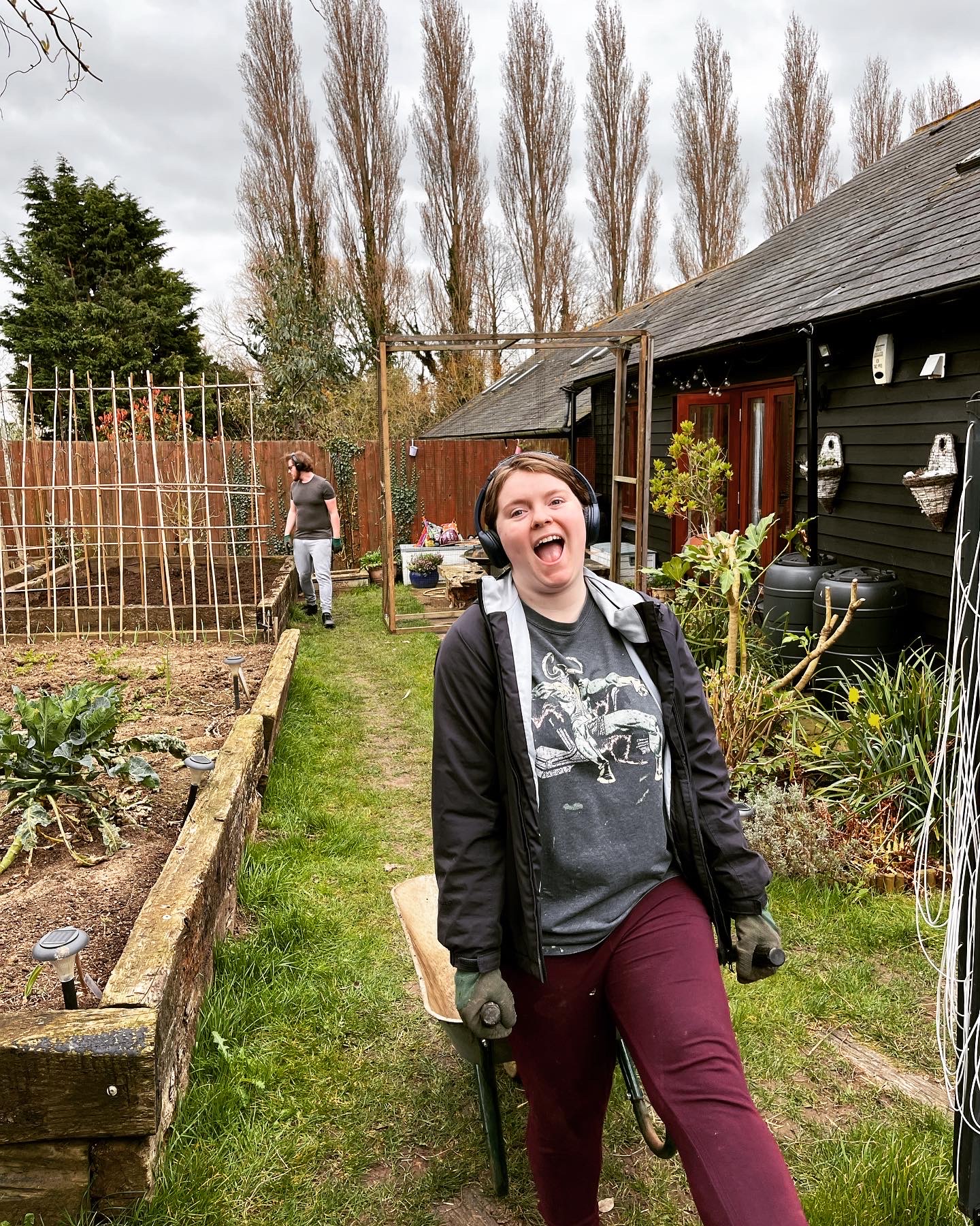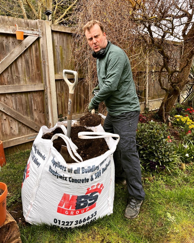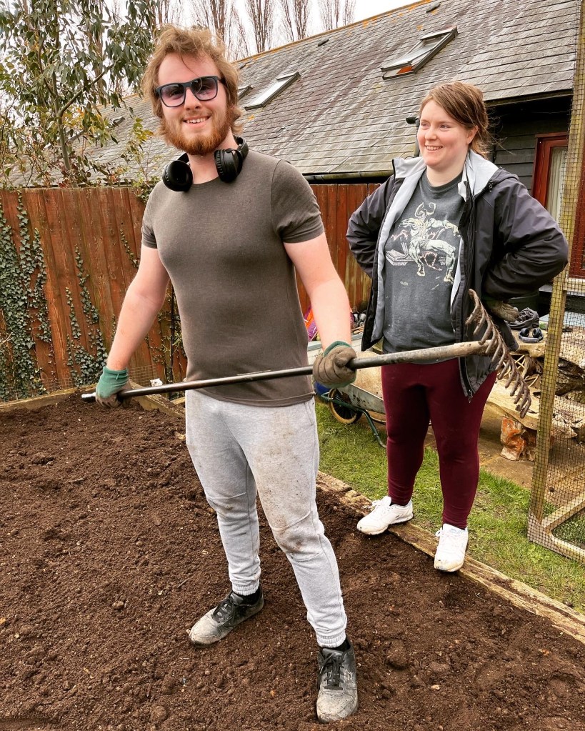 About 10 days ago I had another 5 bags of top soil arrive. This is usually an annual thing, I like to get it in before the end of the financial year as it’s an expense for work. The soil in the raised beds always drops slightly during the year, it’s just something that it does, but eventually I won’t need to get any more. Each bag weighs about a ton, so that’s a lot of soil for one person to move on their own. George is at university so got away with it this year, but with Mark and I shovelling into the barrow, Emily wheeling the barrow and then with the help of Kai tipping the soil into the bed and then Kai raking it about we were working like a very well oiled machine. We got the first 2 bags done within about half an hour, and then sat down for a little light refreshment, and then did the last 3 bags. We started at 10.30am and were finished by just gone noon. I didn’t think that we’d get them all done by lunchtime, I was hoping to get about 3 done, so that was brilliant. Well done team Woodside Barn!!