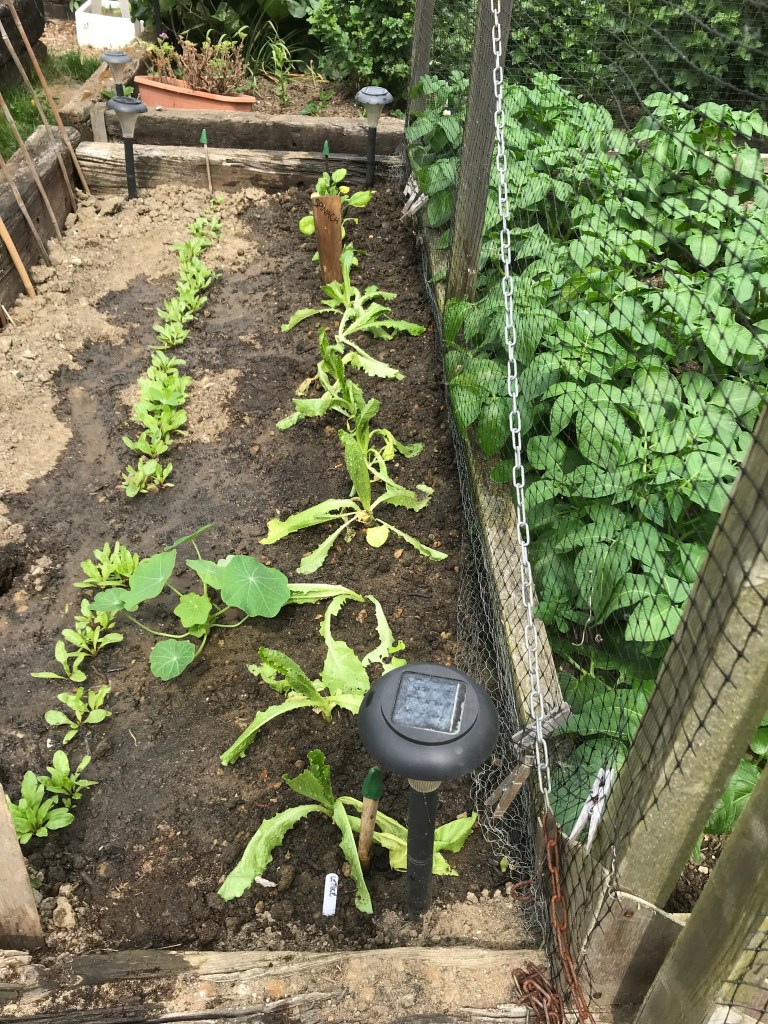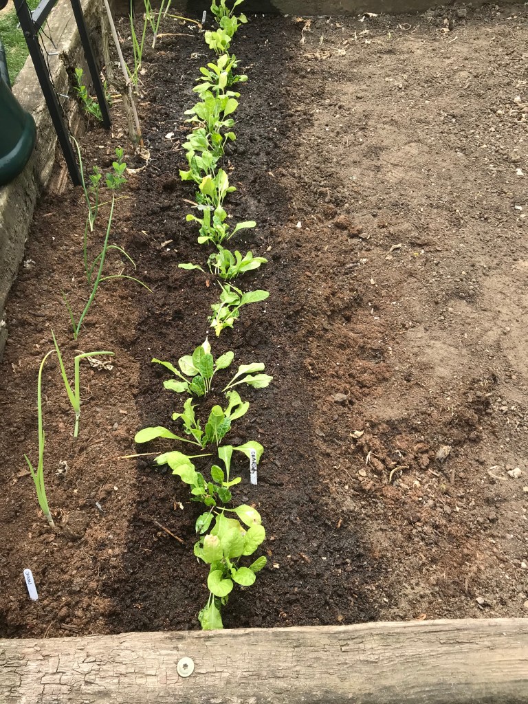 My parsnips this year, not one germinated. I’m not sure why. The seeds tend to only last a couple of years, so maybe they were old. So in their place I planted out some more Lettuce and some Spinach.