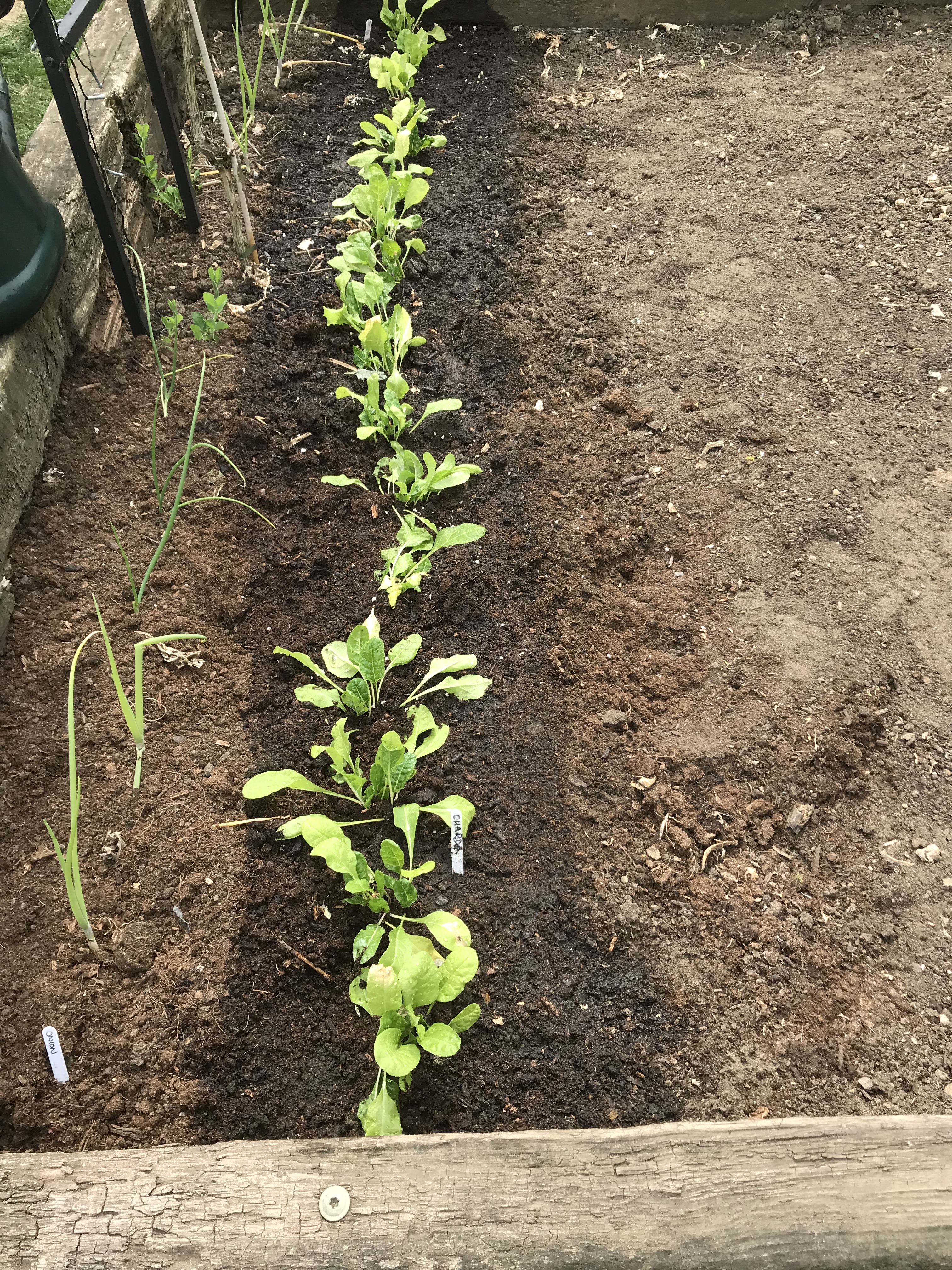 I planted out my Chard in a row next to some onions.