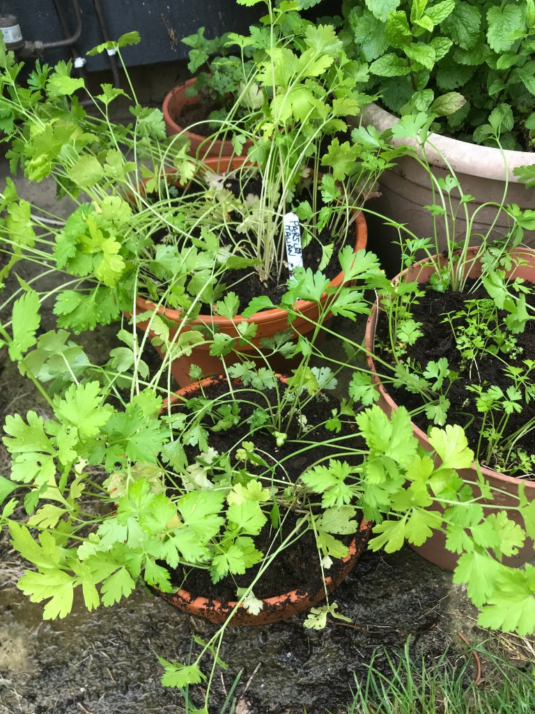And most of my Italian ParsleyI planted out in pots next to the herb patch. I still have a few plants left, but will plant that out somewhere else, most probably in a trough, as I have one in the greenhouse. The more you pick the more will grow.