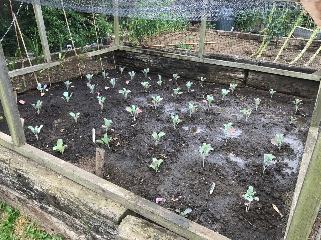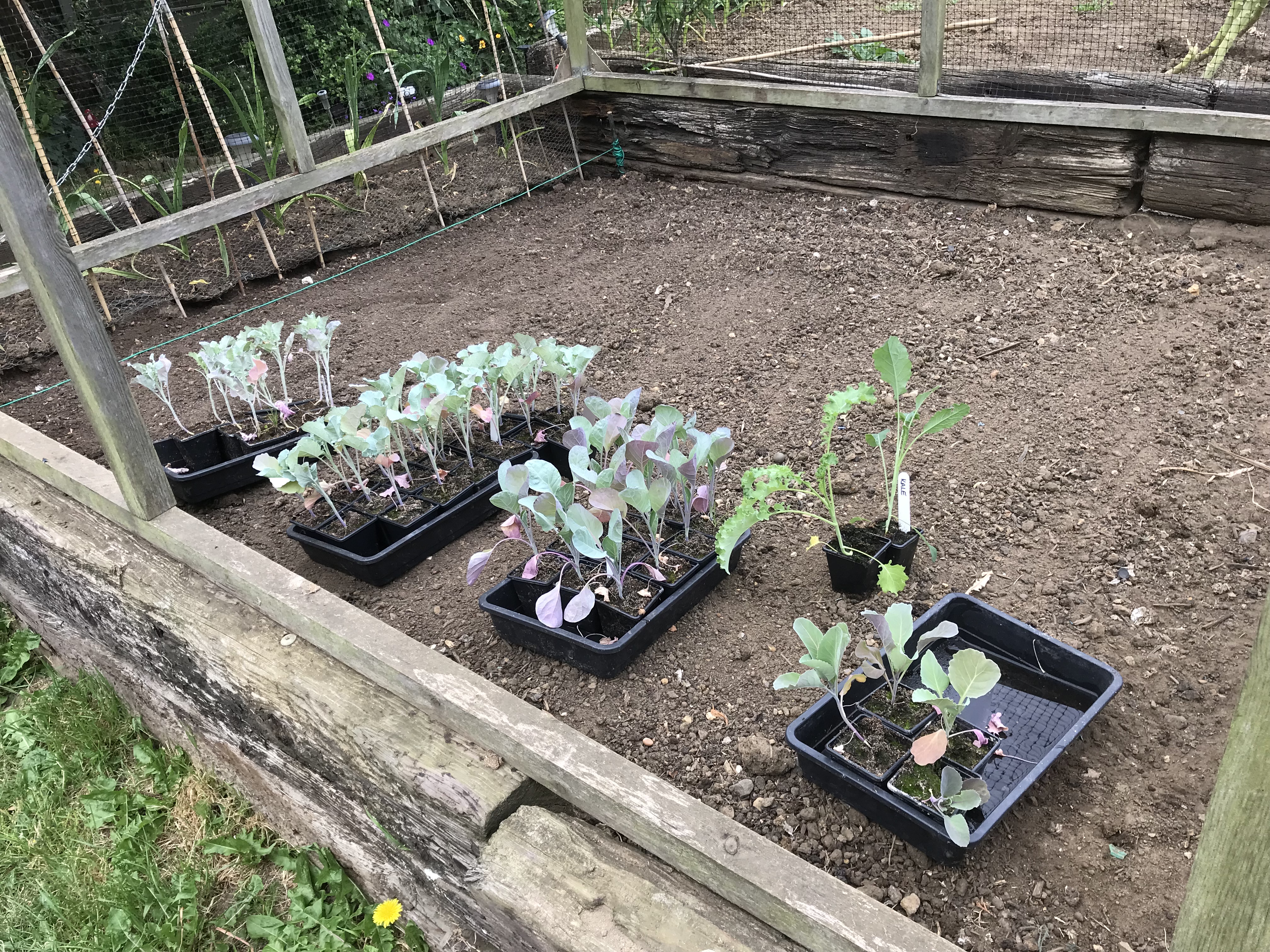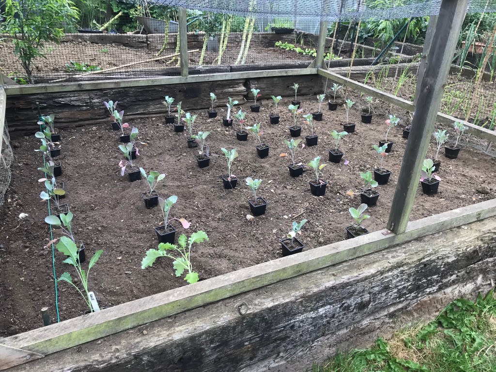 After lunch it was then time to get my brassicas planted outside in the cage that the chickens like to play in. Now if the chickens had their way then they would eat all my brassicas in about 5 minutes, but I clearly don’t want that to happen. So the chickens are now back in their large run which is attached to their house, and the brassicas are playing in the playpen now.