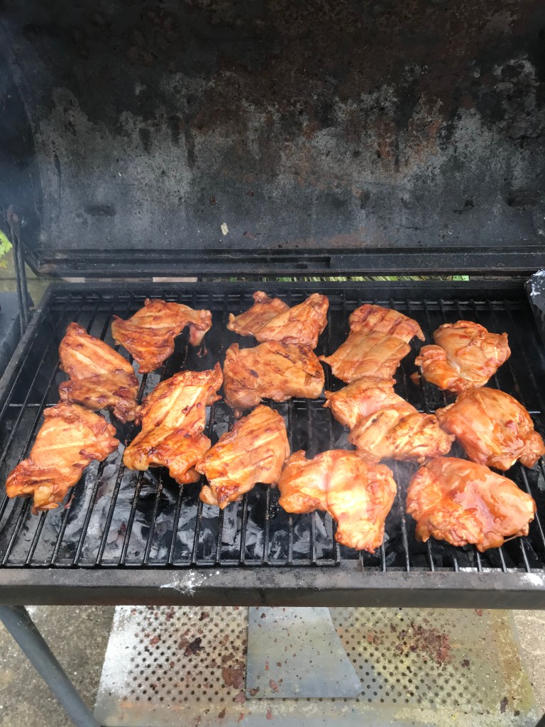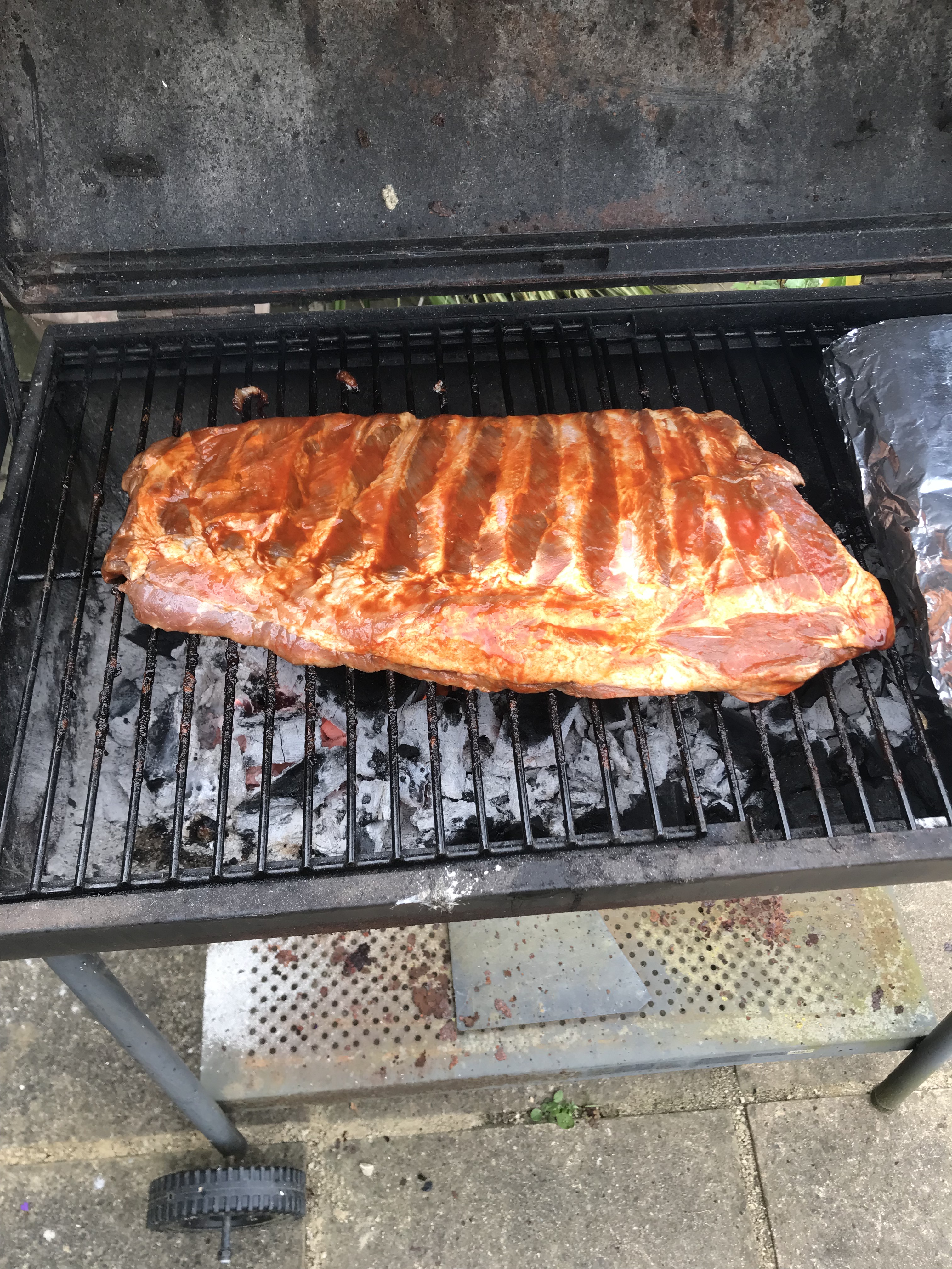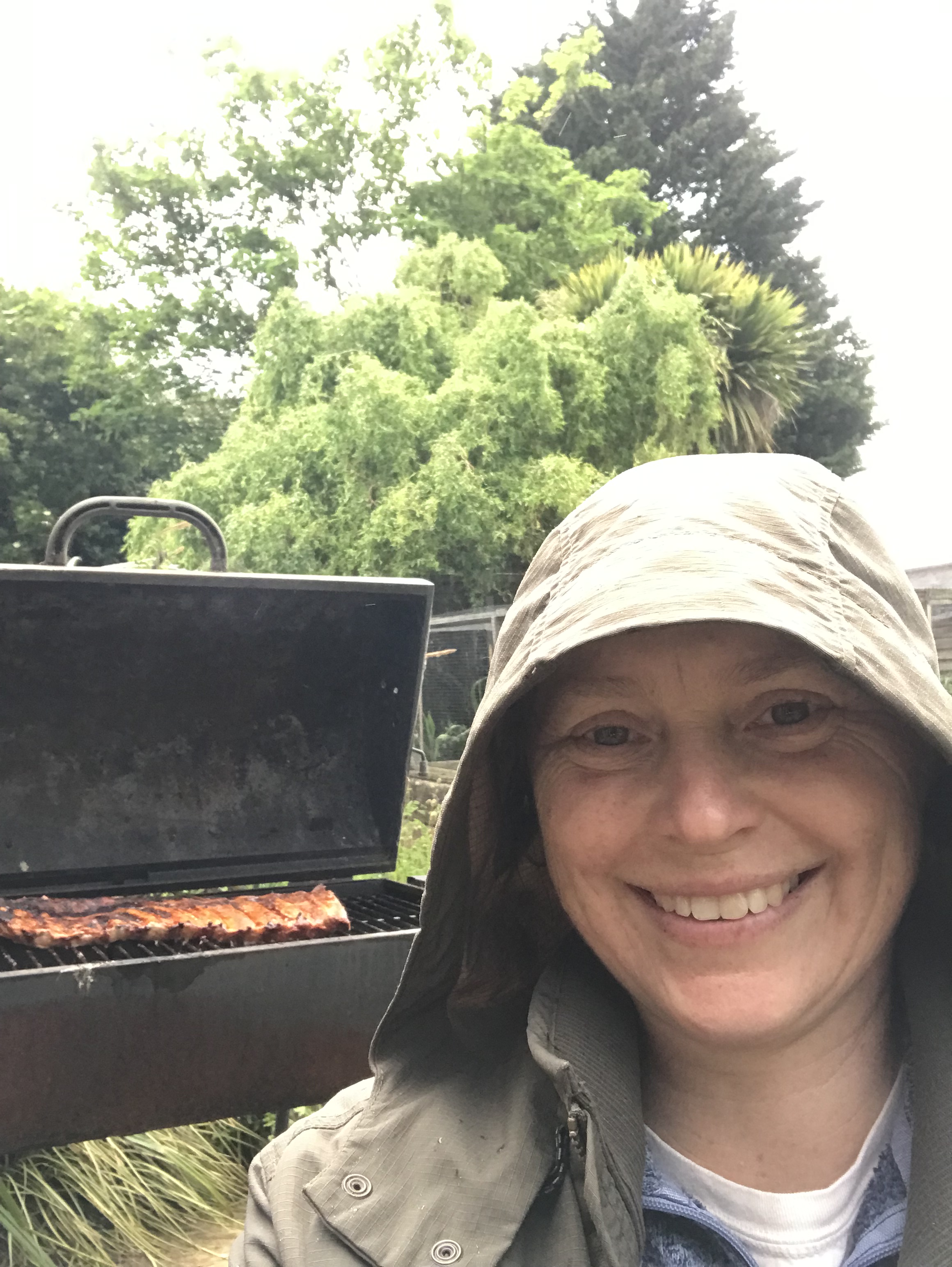 I’m planning on having loads more this summer, and eating outside in the garden when we can. The weather stayed dry right up to the very end when I was cooking the last slab of ribs. But it was only a few big blobs and nothing too heavy. Still I put on a light jacket just incase.