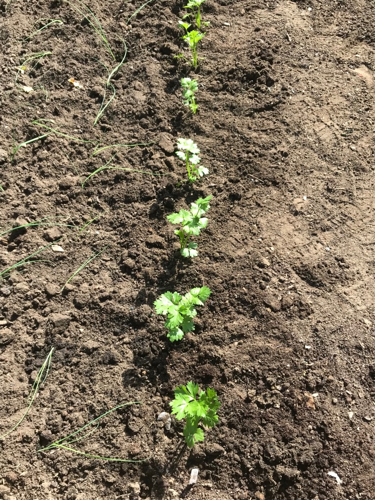 My Celeriac is growing really well. It started off slowly, but once I’d pricked out the seedlings and put them in individual pots they suddenly had a growth spurt. I’ve planted each one about 6-8 inches apart from each other so hopefully I’ll have something to harvest later in the autumn.