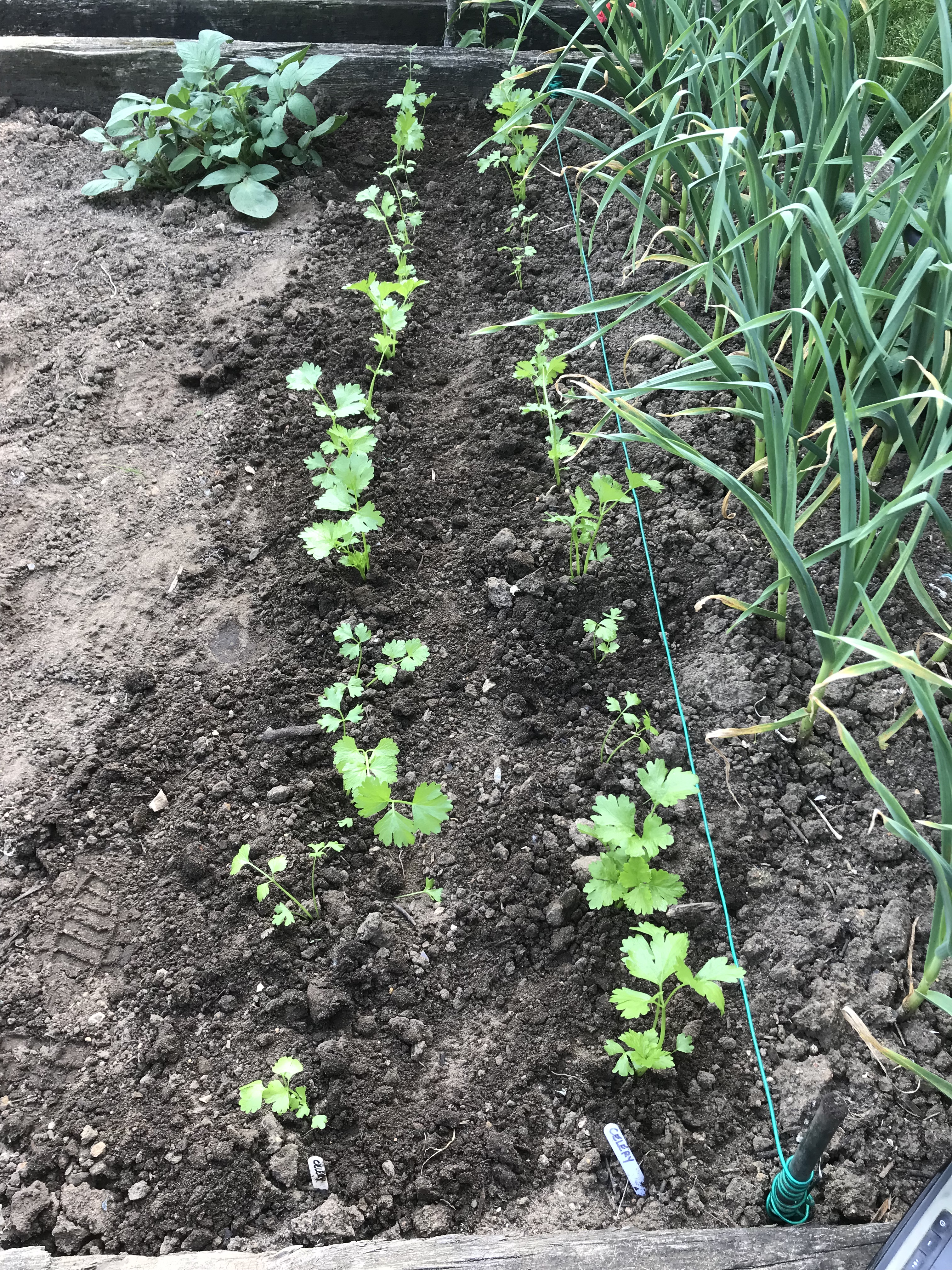 Celery went in next. I’ve planted these on the other side of the bed to the celeriac so I don’t get them confused. They look exactly the same, well they are closely related to each other. I suppose you could call them second cousins. This is the first time I’ve grown celery so it’ll be interesting to see how they get on.